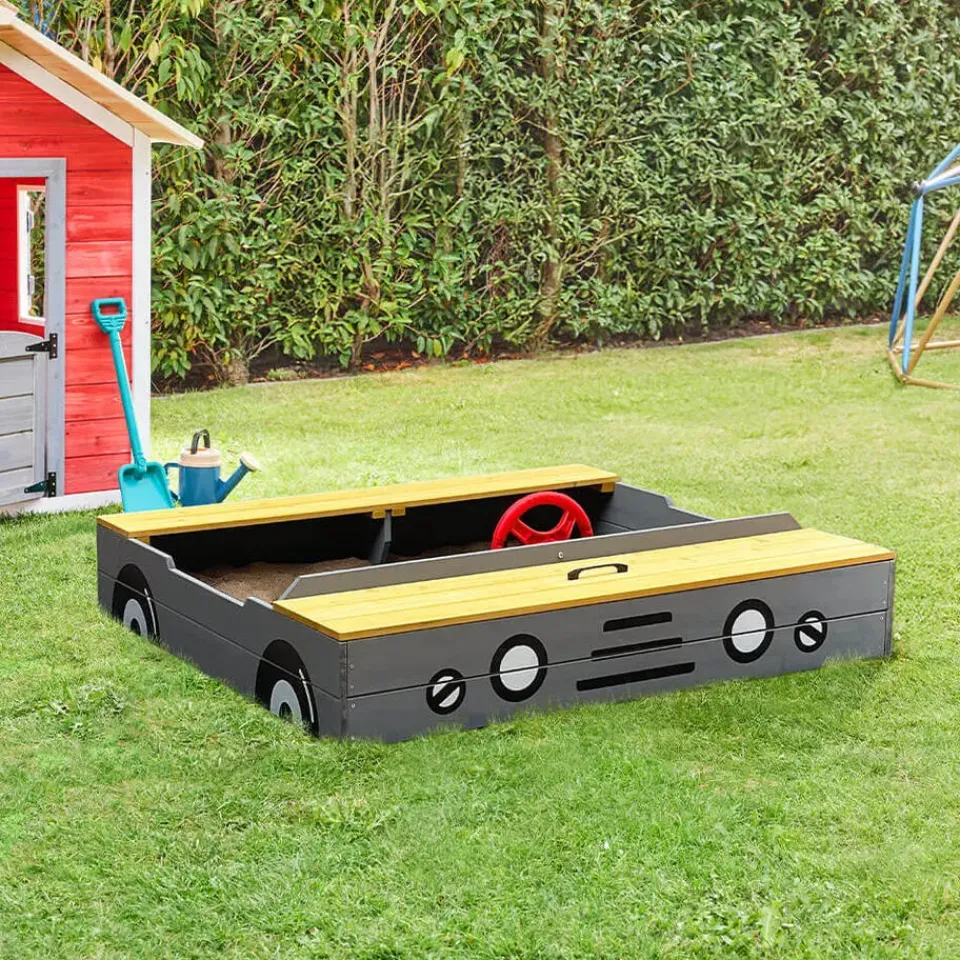 De KIDDY houten zandbak in lichtgrijs biedt creatief speelplezier voor kleine avonturiers. Met zijn unieke autodesign wordt het een hoogtepunt in de tuin en nodigt het kinderen uit om te graven, bouwen en spelen. De KIDDY zandbak maakt indruk met zijn stevige 15 mm dikke hout en niet-giftige verfafwerking voor veilig spelen. Het open ontwerp zonder dak biedt maximale bewegingsvrijheid, terwijl de praktische zitgedeeltes voor extra comfort zorgen. De meegeleverde PE-folie beschermt het zand tegen vervuiling en maakt het onderhoud eenvoudiger. Dankzij het duurzame en duurzame hout is de zandbak bijzonder robuust en weerbestendig. De KIDDY zandbak in de vorm van een auto verandert de tuin in een speelparadijs. Bestel nu en haal onbeperkt graafplezier voor kleine bouwers in huis!