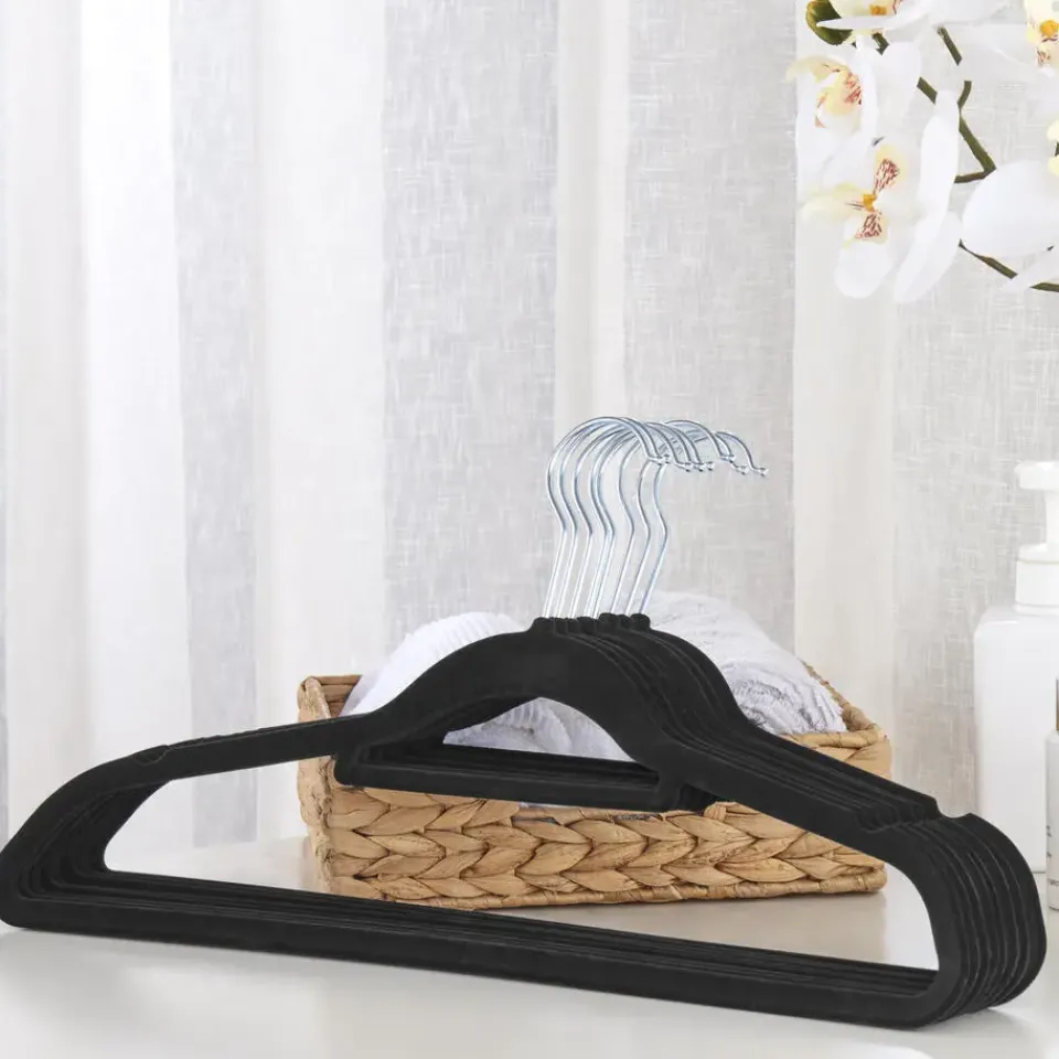 Heeft u goede kledinghangers nodig tegen een zeer voordelige prijs? Dan zijn deze kledinghangers wellicht perfect voor u. U kan de kledinghanger plooien, wat handig is als u bijvoorbeeld de hanger door de nek van een t-shirt wil steken. De kledinghangers hebben een fluwelen voering. Hierdoor zal uw kledij blijven hangen en niet van de kledinghanger afglijden. Bovendien zullen de hangers heel wat ruimte besparen dankzij het compact design. De haak kan 360° draaien en is hierdoor extra praktisch. U kan deze multifunctionele kledinghangers gebruiken voor truien, t-shirts, kleedjes, jeans, enz.. De kleine, bovenste horizontale rail kan u ook gebruiken voor sjaals of stropdassen.