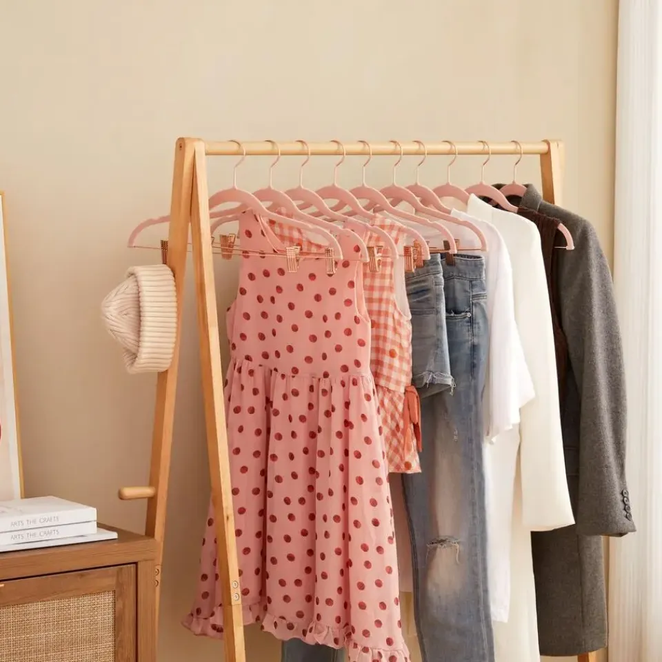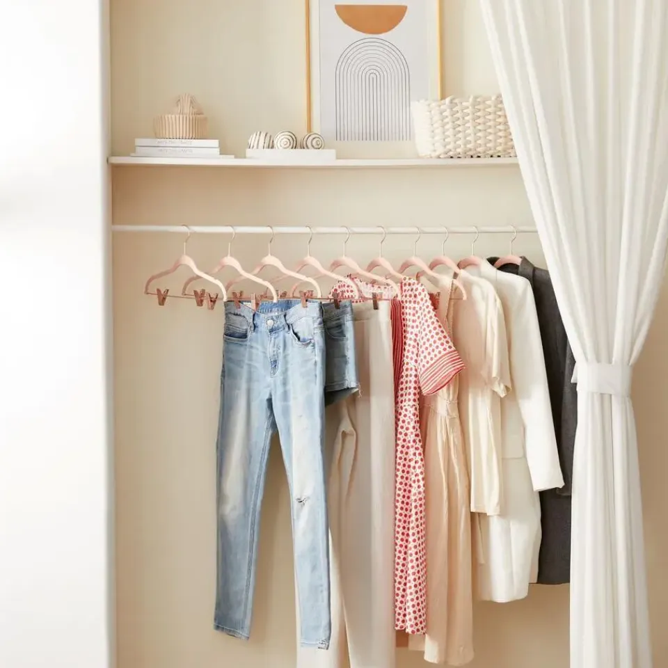Met deze elegante set van 20 kledinghangers hang je gemakkelijk al je kleding op. Fluwelen hangers hebben een antislipoppervlak, inkepingen en schoudercontouren om de vorm van je kleding te behouden. Ze zijn ook voorzien van 2 verstelbare clips voor broeken en rokken. Door hun roze kleur zijn ze een mooie toevoeging aan iedere kast.