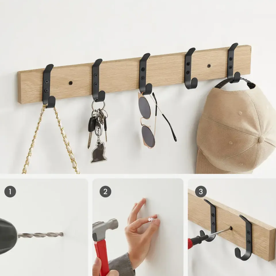 Deze compacte en moderne wandkapstok is ideaal als je niet veel plaats hebt in jouw inkomhal, keuken of slaapkamer. Hang er jouw jassen, t-shirts, handtassen of zelfs sleutels aan en geniet van een opgeruimde ruimte.