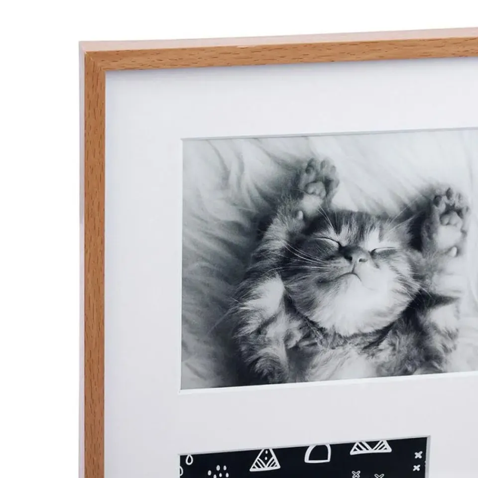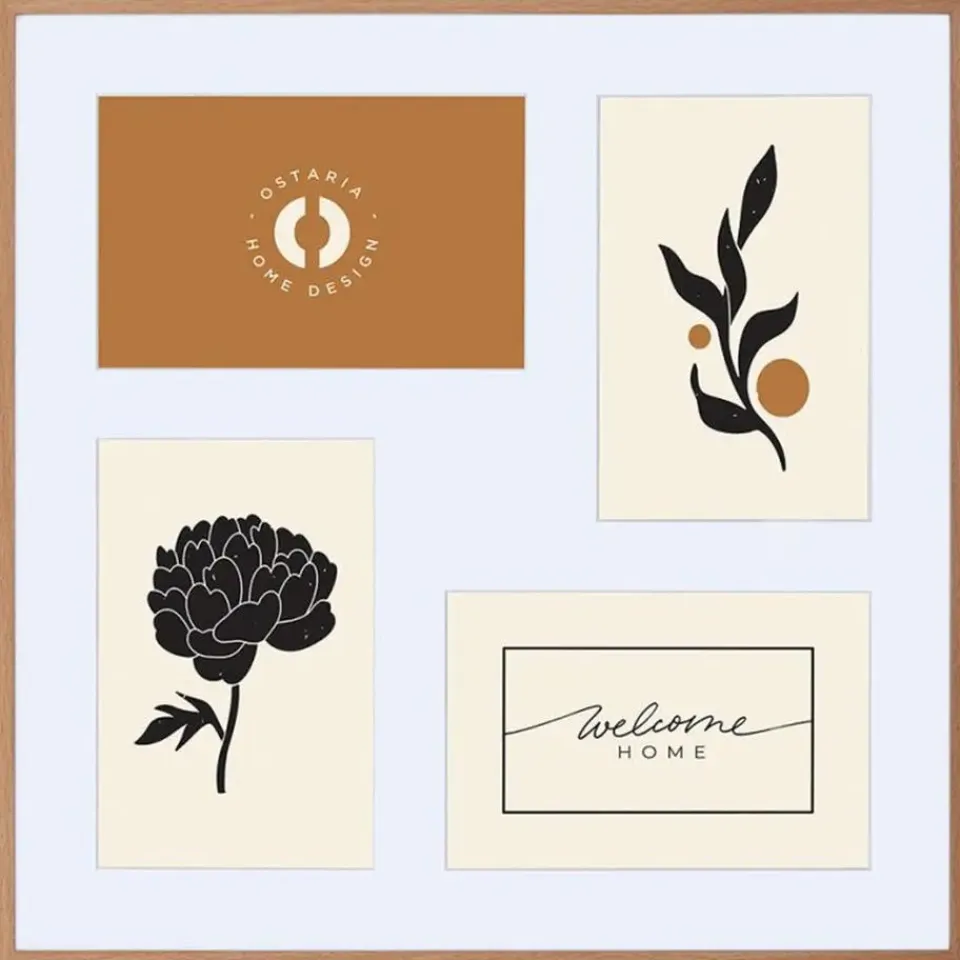 Collage fotolijst uit de Natural serie voor meerdere foto’s. Stel je foto’s tentoon met deze collage fotolijst in de kleur naturel hout met passe partout in de kleur wit. Deze moderne foto collage bestaat uit 4x fotolijstjes voor foto’s met afmetingen van 10 x 15 cm. Materiaal: hout/glas. Merk: Ostaria. Voorzien van ophangingen op deze op te hangen. Formaat: 32 x 32 cm. Wissellijst.