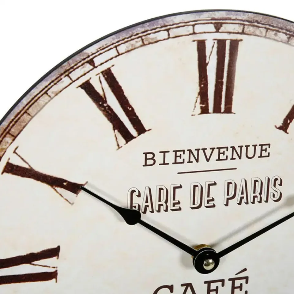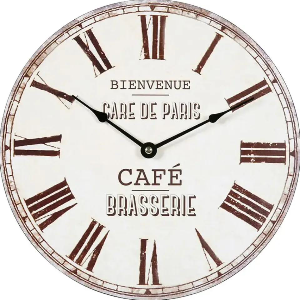 Haal de sfeer van een knus Frans cafe in huis met deze charmante Cafe Brasserie klok van Ostaria. De wijzerplaat heeft een vintage uitstraling met subtiele Franse details, terwijl het MDF in bruin tint voor een warme, huiselijke look zorgt. Met zijn formaat van 30 cm is hij perfect voor de keuken, eetkamer of een gezellige hoek in huis. Voeding: AA batterij (niet inbegrepen).