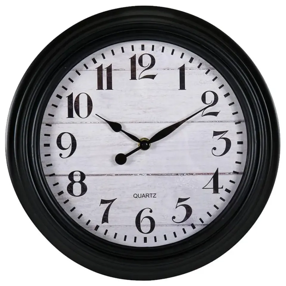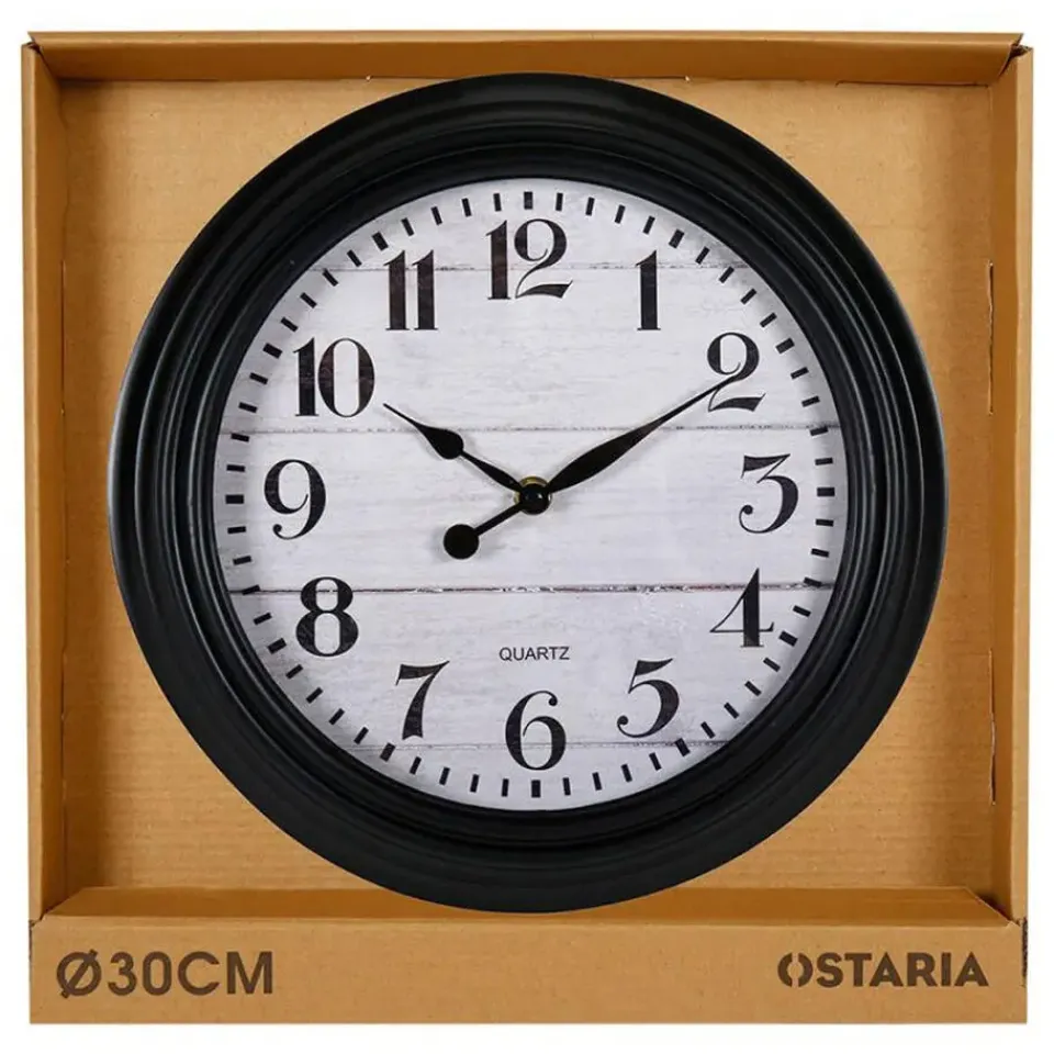 Ostaria Wandklok/muur klok – houtlook – D30 cm – kunststof – zwart – keuken/kamer.