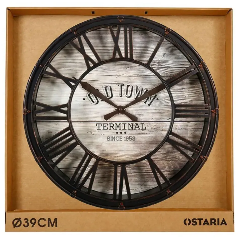 Ostaria Wandklok/muur klok – Montparnasse – D39 cm – kunststof – bruin.