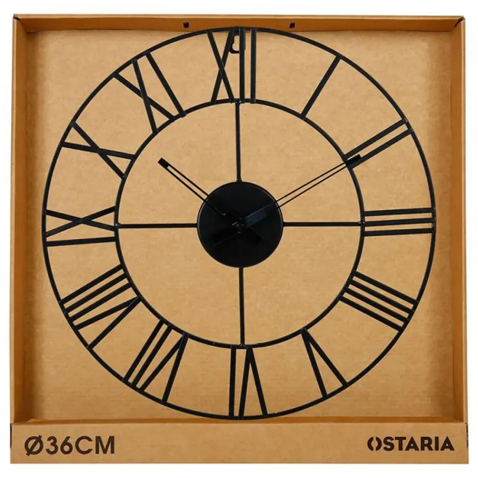 Ostaria Wandklok/muur klok – D36 cm – metaal – zwart – keuken/kamer.