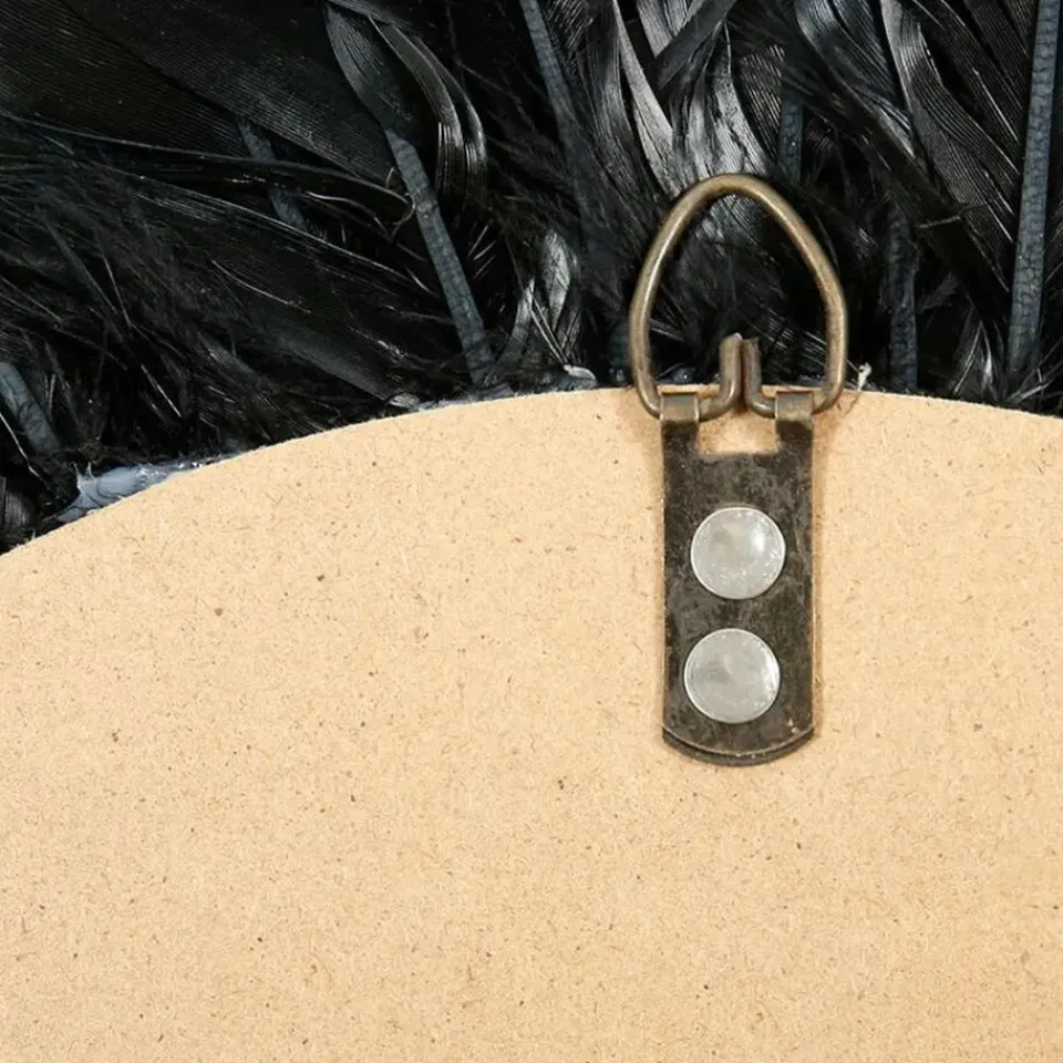 - Veren omlijsting: Gemaakt van natuurlijke veren voor een warme en authentieke look.
