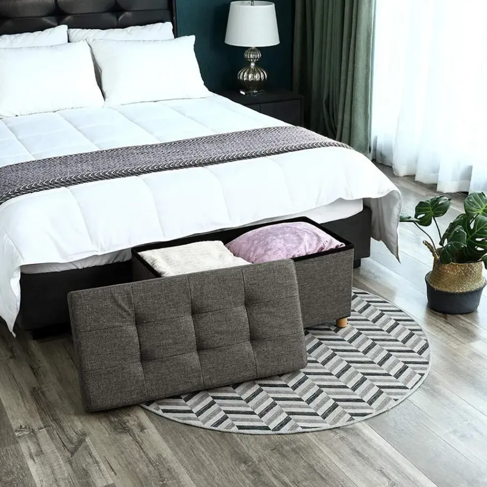 Merkloos Poef - opvouwbaar - met poten - stof - 76 cm - donkergrijs Discount