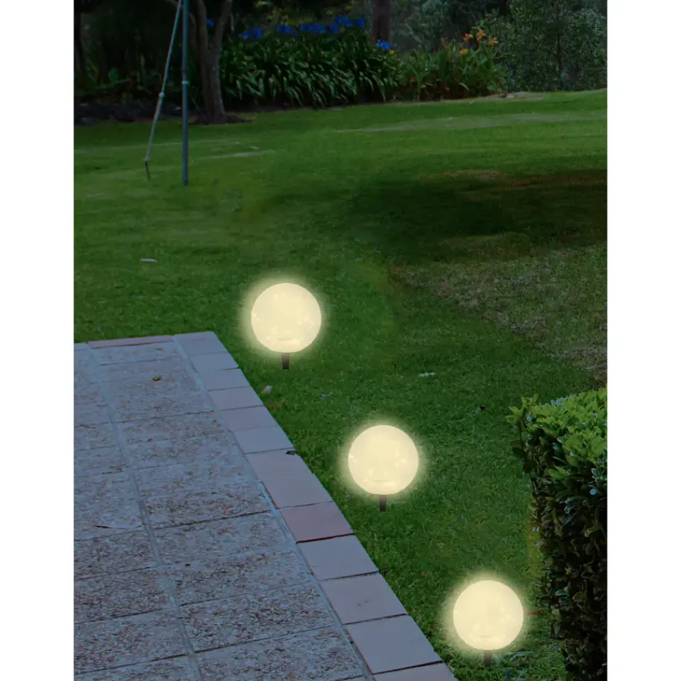 Solar tuinlamp craquele bol, met schemer sensor en Led verlichting voor de tuin. De lamp werkt op zonne-energie waardoor het zichzelf oplaadt gedurende de dag. Inclusief grondpin, zodat u ze bijvoorbeeld langs een looppad kunt zetten. Schakelaar: ja. Kleur licht: warm wit. Kleur lamp: zwart. Afmeting: 20 x 20 cm. Materiaal: glas. Inclusief batterij. Tuinlampen/tuinverlichting/prikspots op zonne-energie.