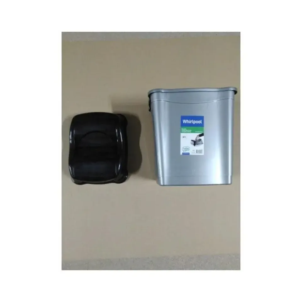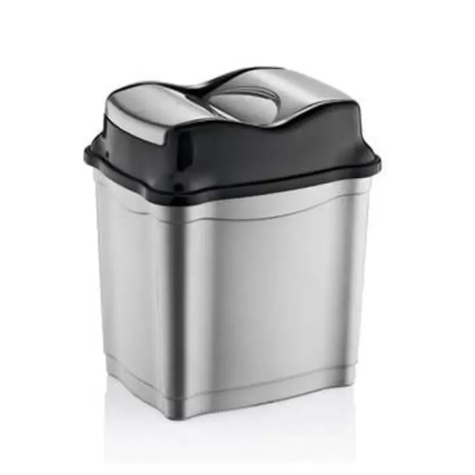 Een zilver/zwarte vuilnisbak met afneembare deksel in de kleur zilver/zwart. De vuilnisemmer heeft een inhoud van 9 liter en een ge?ntegreerde bak. Afmeting ca: L19,2 x B26 x H32 cm BPA vrij. Materiaal: hoogwaardig kunststof. Een ideale afvalemmer voor de keuken/kantoor.