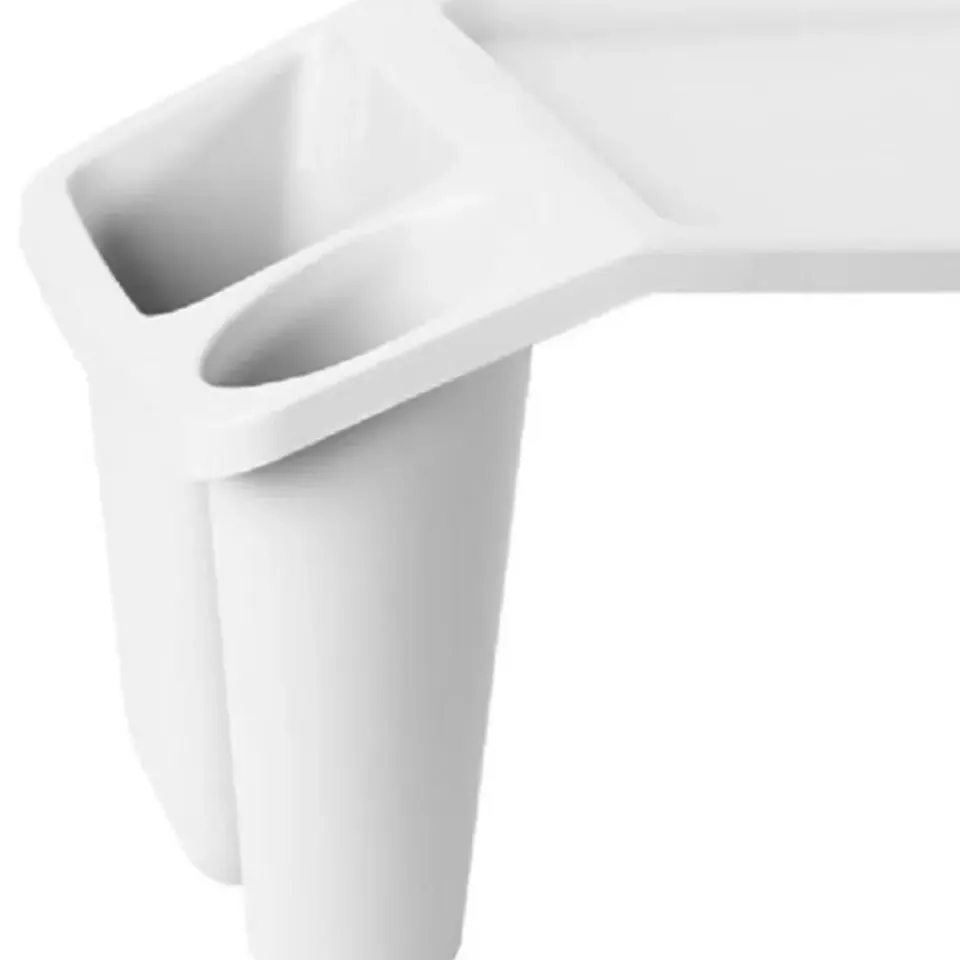 Dienblad/schoottafel met handige opbergvakjes in de kleur wit. Het dienblad heeft pootjes, zodat deze gemakkelijk te gebruiken is bij het serveren van een ontbijt op bed, eten op de bank of zelfs tijdens het thuiswerken. Afmeting: circa L59,5 x B30,5 x H20 cm. Reinigingsinstructies: Afnemen met een vochtige doek en goed nadrogen met een theedoek.