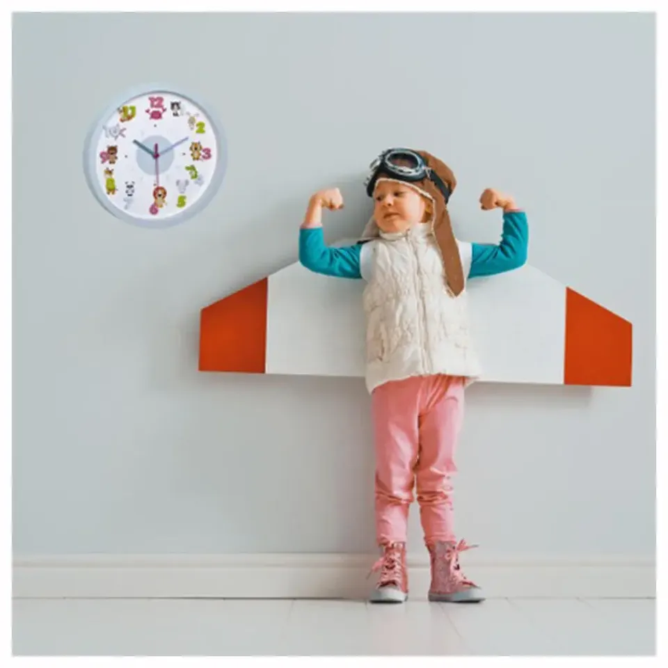 TFA Kinderkamer little animals wandklok in de kleur lichtblauw. Deze kinderkamer wandklok van TFA heeft een speels gekleurd design, perfect voor een gezellige kinderkamer. De klok is gemaakt van kunststof/glas en heeft een diameter van 30 cm. De klok is stil, maakt geen geluid en is gemakkelijk leesbaar voor jonge kinderen. Met zijn ronde vorm is deze muurklok een leuke aanvulling in elke kinderkamer.