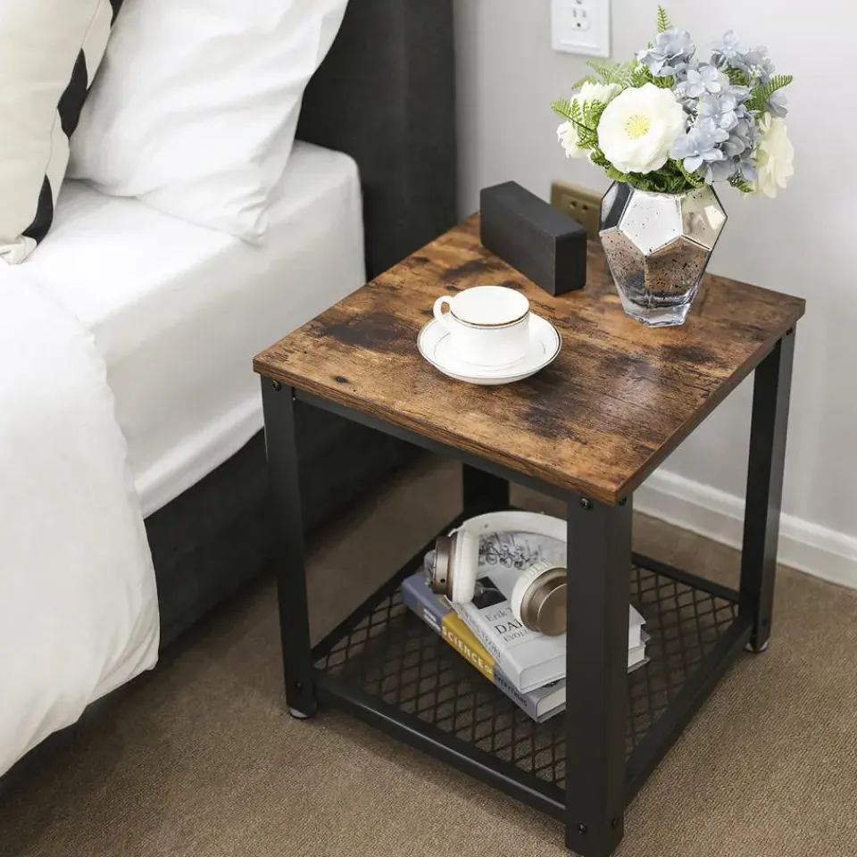 En dat is nog niet alles! Er zijn ook twee opbergplanken beschikbaar waardoor er ruimte genoeg is voor magazines, decoratie of boeken. De afmetingen van 45×45 cm maken het meubel extra praktisch. Het draagvermogen van het bovenblad is 20 kg en dat van het rooster is 15 kg.