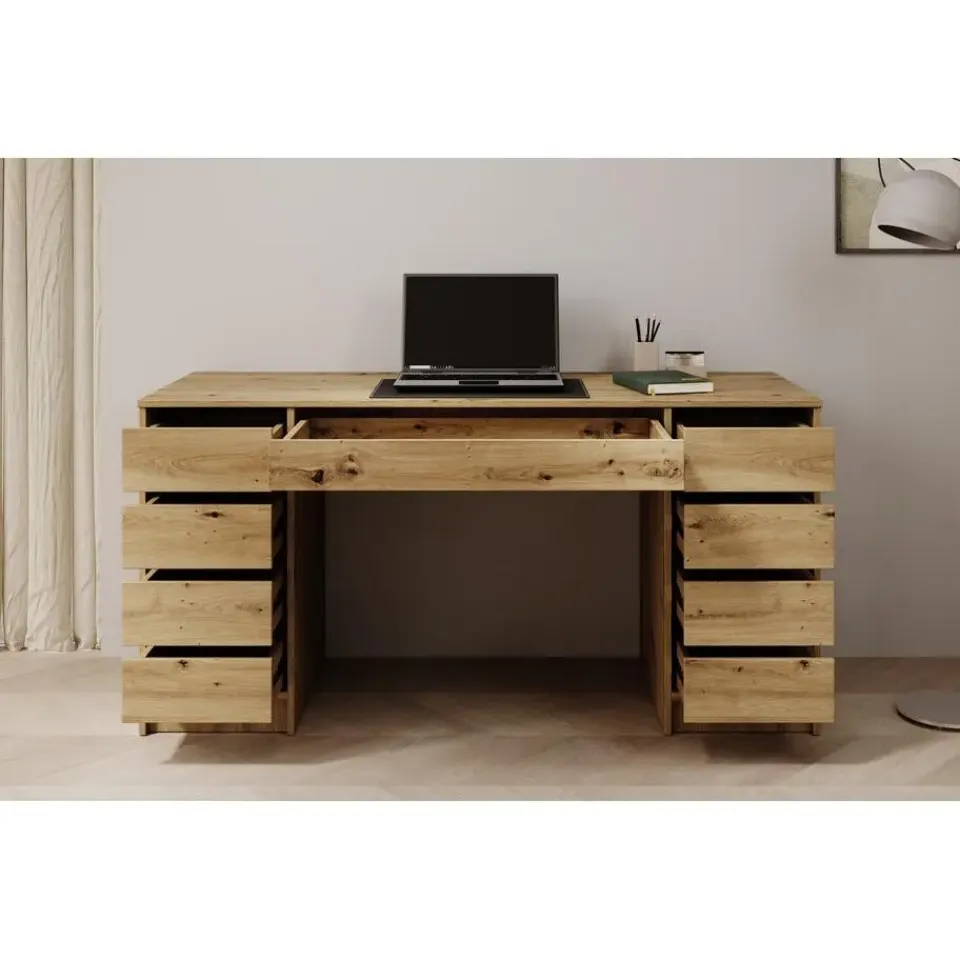 Bureau Avio beschikt over 9 greeploze lades. Deze zijn via de bovenzijde te openen. Het meubel is uitgevoerd in de kleur eiken en heeft een moderne uitstraling. Het meubel wordt ongemonteerd geleverd. Je dient het dus met behulp van de bijgeleverde handleiding zelf in elkaar te zetten.