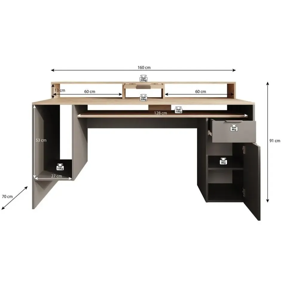 - H 91 x B 160 x D 70 cm
