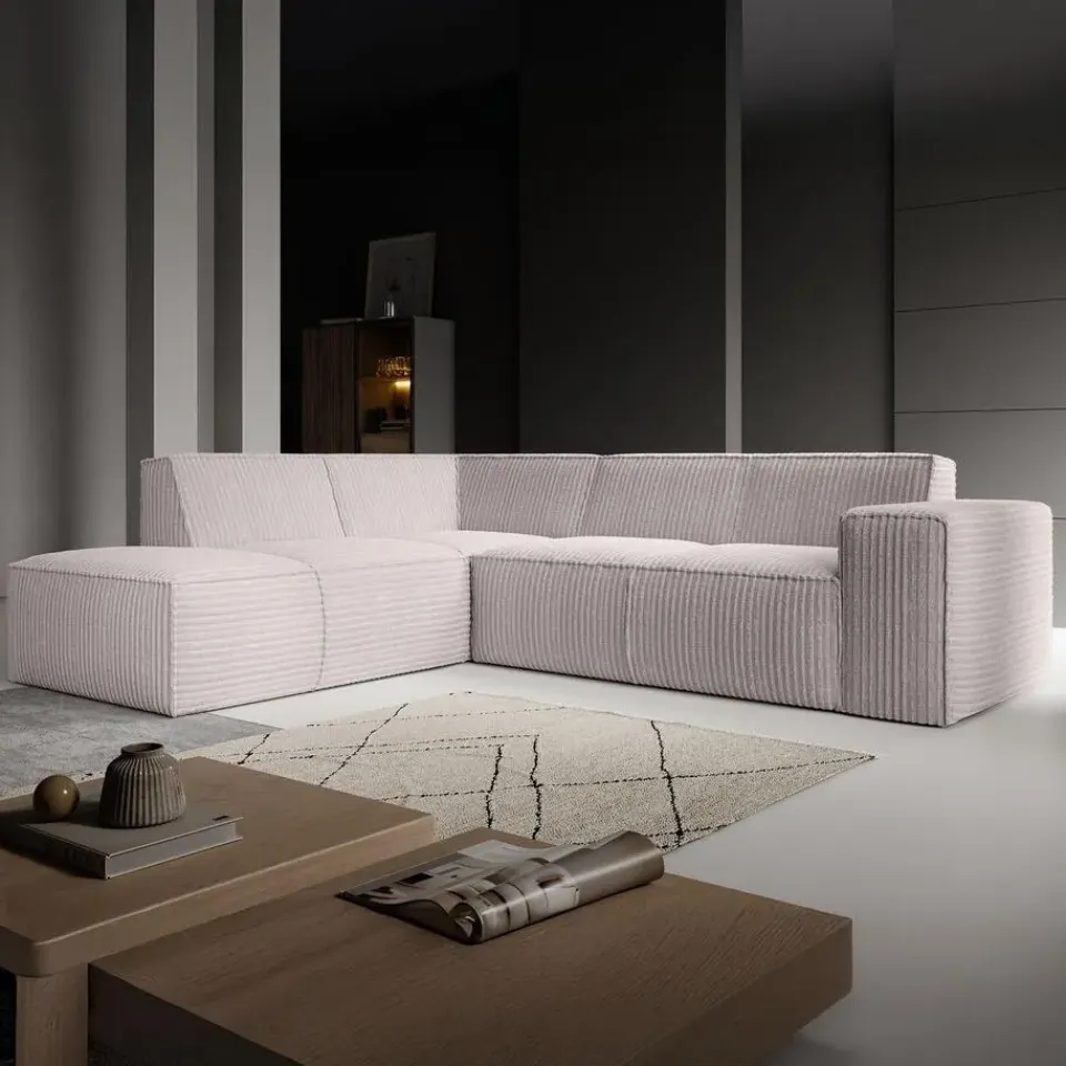 Hoekbank Monet is een hoekbank gemaakt van fluffy ribstof in beige kleur. Het is een L-vormige hoekbank geschikt voor 4 tot 5 personen. Beschikt over vaste zit- en rugkussens en een naar buiten gestikte naad op de randen. Het meubel wordt ongemonteerd geleverd. Je dient het dus met behulp van de bijgeleverde handleiding zelf in elkaar te zetten.
