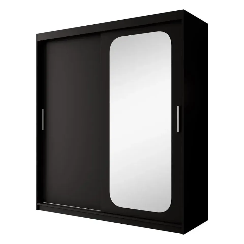 Kledingkast Pete is voorzien van 2 schuifdeuren welke openen met zilverkleurige handgrepen. De binnenkant bestaat uit 10 opbergvakken en 2 kledingroedes. De rechterdeur heeft een handige spiegel. De garderobekast is uitgevoerd in een moderne stijl. Het meubel wordt ongemonteerd geleverd. Je dient het dus met behulp van de bijgeleverde handleiding zelf in elkaar te zetten.