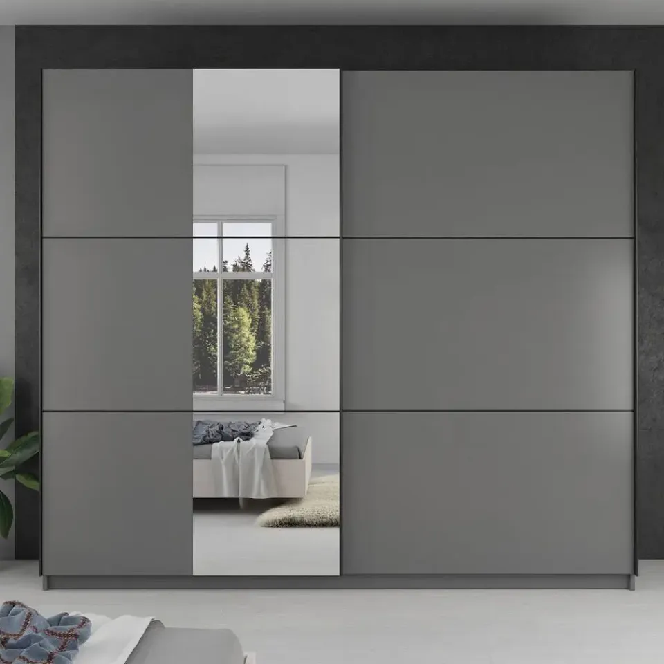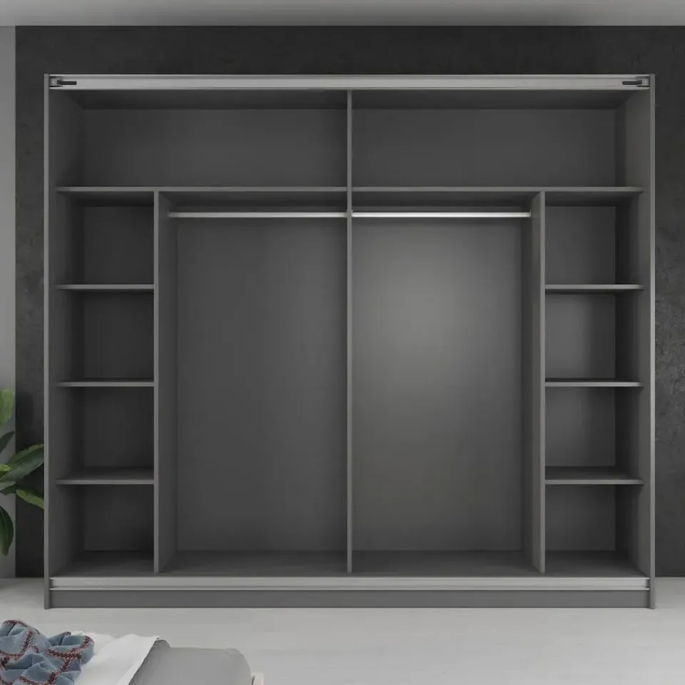 Kledingkast Samantha beschikt over 2 schuifdeuren met spiegel. De binnenkant bestaat uit 2 kledingroedes en 10 opbergvakken. Het meubel wordt ongemonteerd geleverd. Je dient het dus met behulp van de bijgeleverde handleiding zelf in elkaar te zetten.
