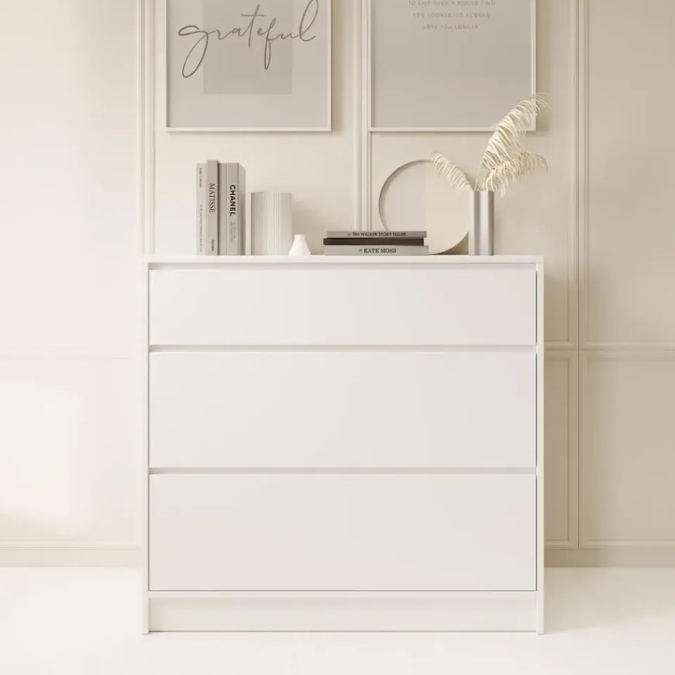 Ladekast Brett beschikt over 3 lades die openen via de inkepingen. De Brett heeft een moderne uitstraling en is uitgevoerd in de kleur wit. Het meubel wordt ongemonteerd geleverd. Je dient het dus met behulp van de bijgeleverde handleiding zelf in elkaar te zetten.