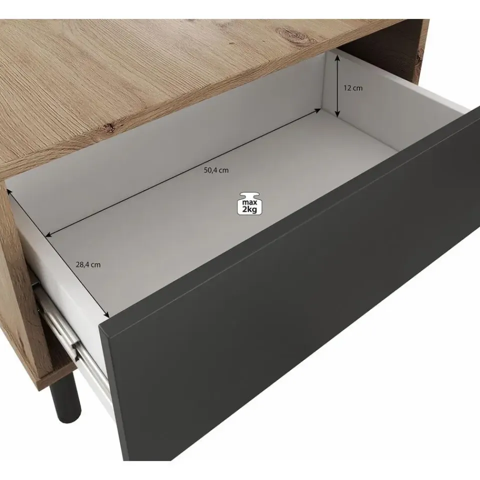 Salontafel Marcos is een rechthoekig model. De tafel beschikt over een greeploze lade en is via de bovenkant te openen. Onder het blad bevindt zich een opbergvak. De tafel staat op zwarte pootjes Het meubel wordt ongemonteerd geleverd. Je dient het dus met behulp van de bijgeleverde handleiding zelf in elkaar te zetten.