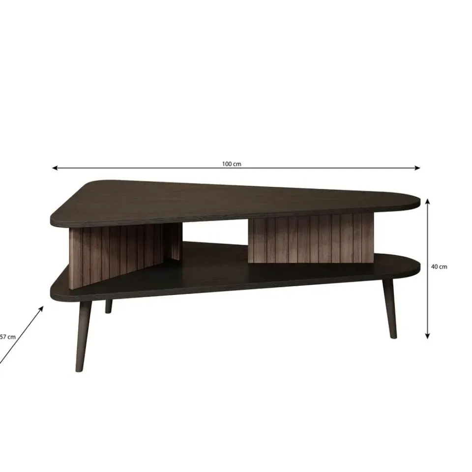 Salontafel Pedro is een speelsvormige tafel in zwart eiken met donker eiken kleur. De Pedro beschikt over een handige opbergplank en staat op metalen poten van 20 cm hoog. Het meubel wordt ongemonteerd geleverd. Je dient het dus met behulp van de bijgeleverde handleiding zelf in elkaar te zetten.
