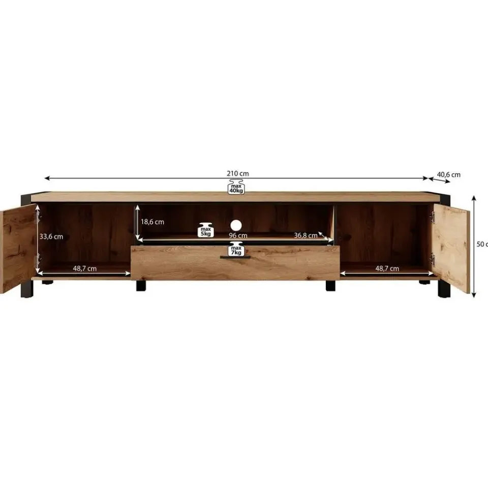 TV-Meubel Acapulco heeft 2 deurtjes en een lade. Deze openen met zwarte handgrepen. Het meubel staat op zwarte pootjes. Het meubel wordt ongemonteerd geleverd. Je dient het dus met behulp van de bijgeleverde handleiding zelf in elkaar te zetten.