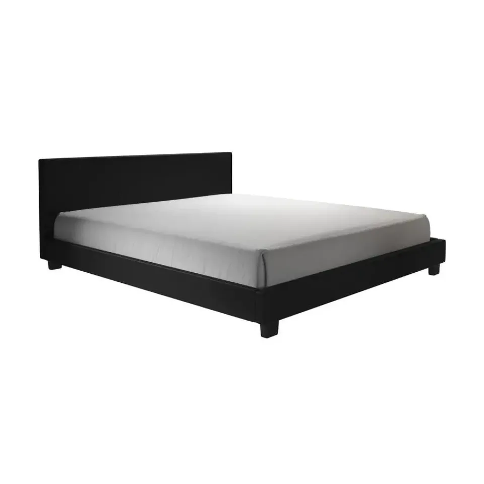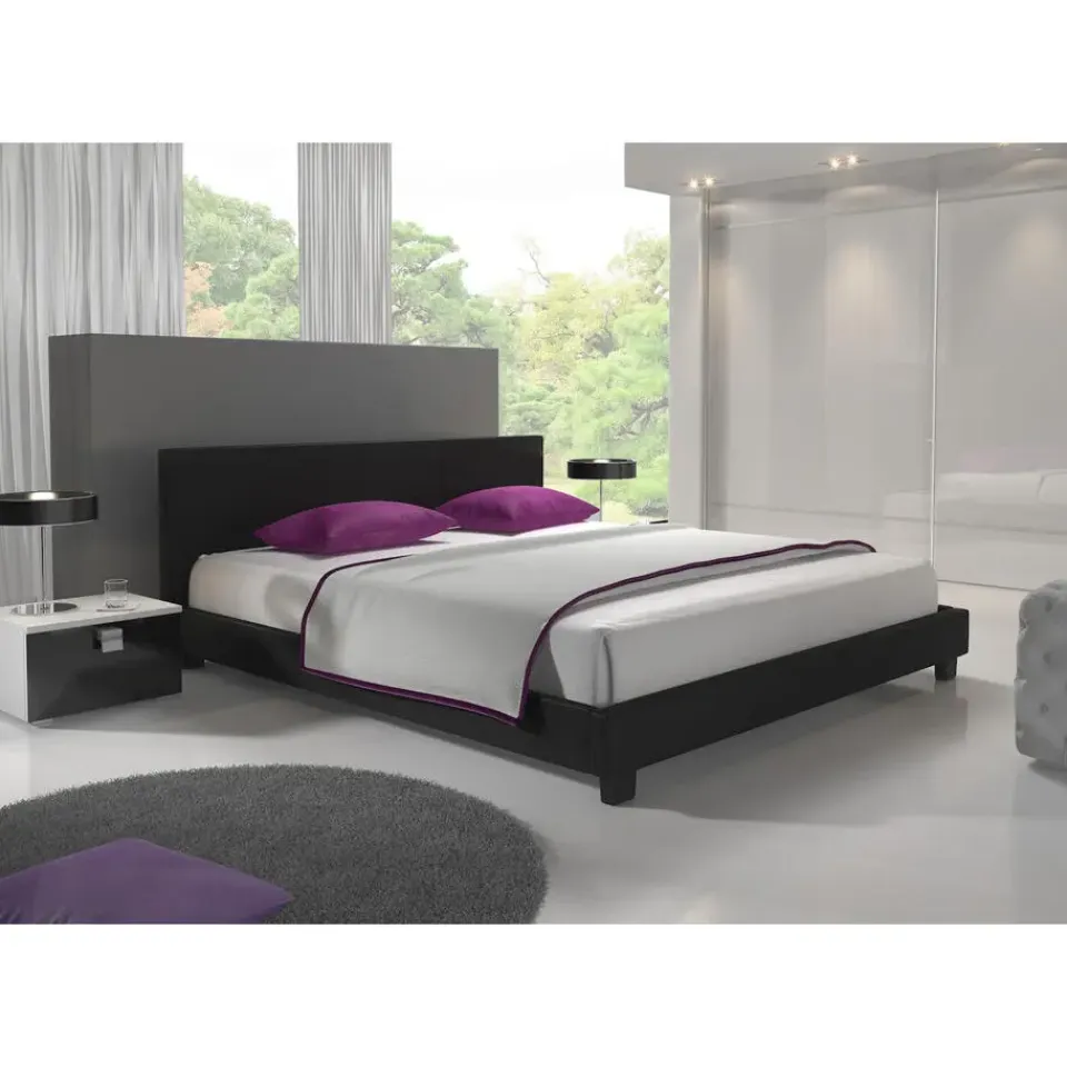 Tweepersoonsbed George is gemaakt van stevig kunstleer in zwarte kleur. Het bed wordt met lattenbodem geleverd en is geschikt voor matrasmaat 140×200 cm. Inclusief hoofd- en voetenbord. Afmetingen: 149x210x78 cm. Het meubel wordt ongemonteerd geleverd. Je dient het dus met behulp van de bijgeleverde handleiding zelf in elkaar te zetten.