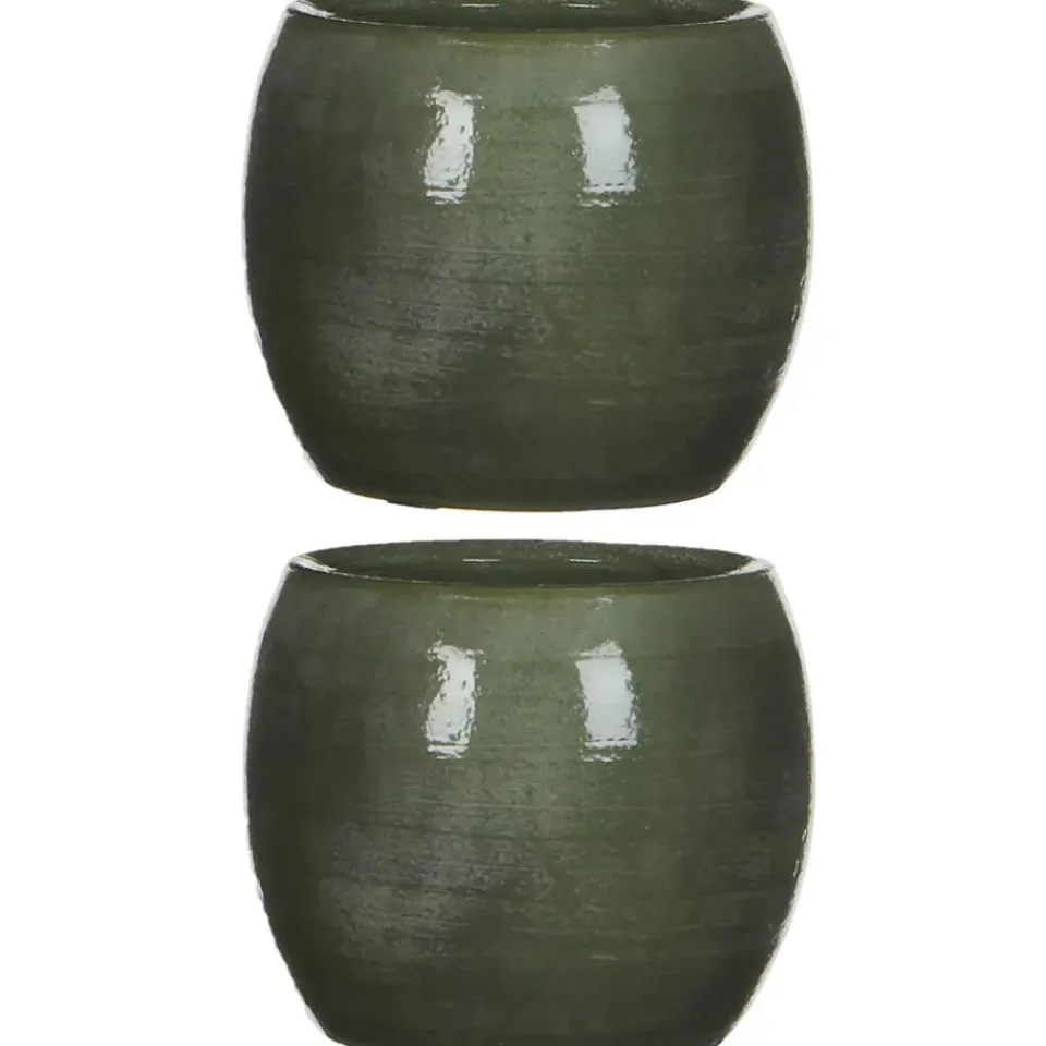 Keramieken bloempot Lester – glanzend groen – H12 x D14 cm – ronde plantenpot voor binnen