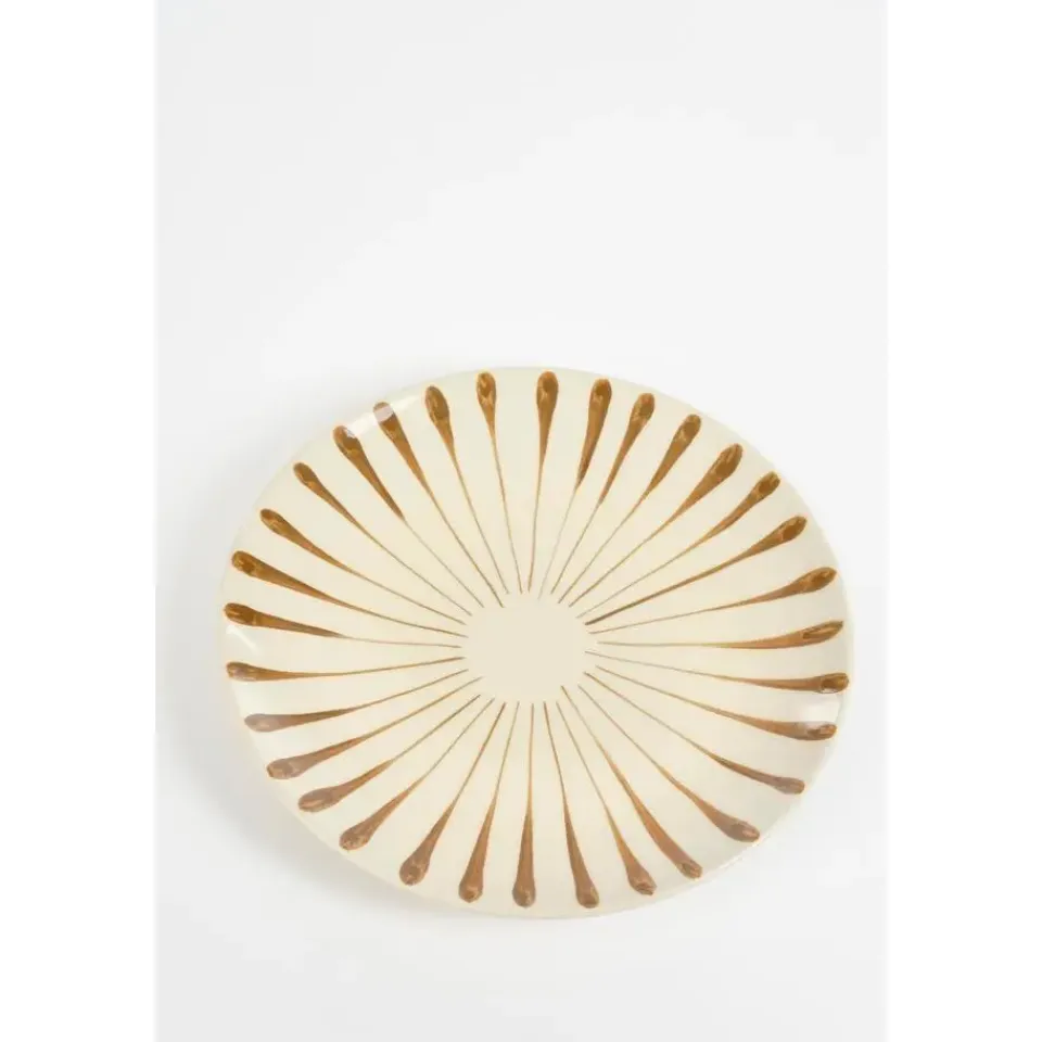 De Elsie dinerborden van Mica Decorations brengen feestelijkheid én stijl op tafel. De handgeschilderde strepen, met smalle en brede penseelstreken, geven elk bord een uniek karakter! Elk bord is gemaakt van sterk steengoed en is niet alleen stijlvol, maar ook praktisch: geschikt voor de oven tot 200 °C, magnetron en vaatwasser. Het bord heeft een hoogte van 3 cm en een diameter van 26 cm. Combineer het met de andere serviesstukken uit de Elsie-serie voor een complete en sfeervolle eettafel.