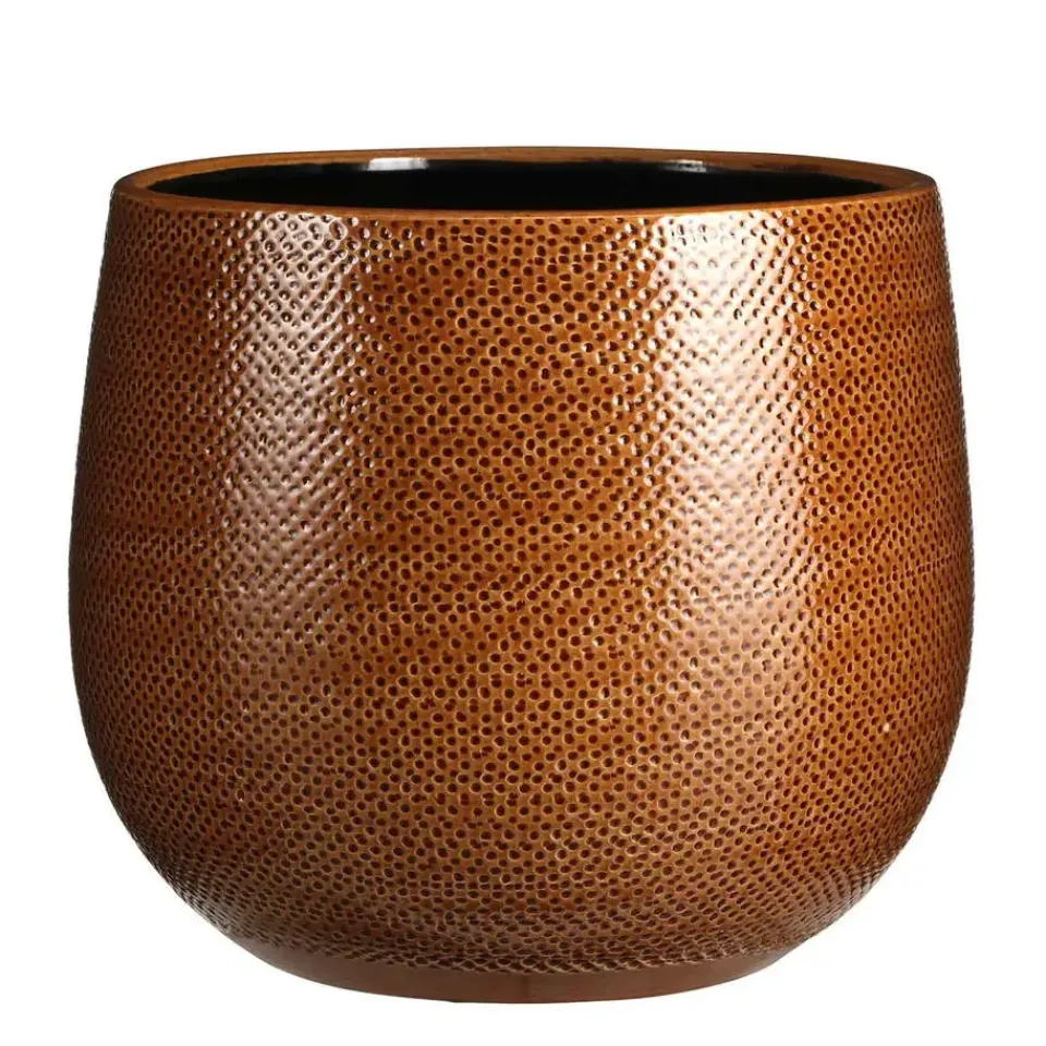 De gedetailleerde afwerking en de subtiele glans maken de serie Gabriel tot favoriet. Zo ook deze pot, die allereerst opvalt door de trendy okerkleur. Als je de pot wat beter bekijkt valt ook de bijzondere afwerking op: een natuurlijke reliëf structuur en licht glanzende finish. Deze keramieken pot is dan ook met de hand gemaakt en afgewerkt door traditionele, Portugese pottenbakkers. Hierdoor is iedere pot helemaal uniek! Naast deze pot bestaat de Gabriel serie ook uit andere potten, vazen en schalen in verschillende kleuren en maten die mooi met elkaar te combineren zijn. Deze bloempot heeft een afmeting van H25 x Ø29 cm en is uitgevoerd in het okergeel.