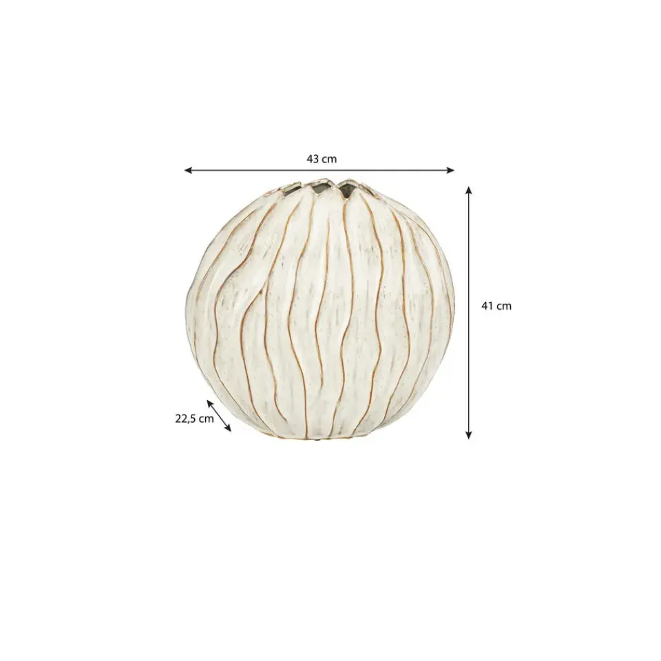De Jovi vaas van Mica Decorations is met de hand gemaakt van keramiek met een geglazuurde afwerking die zorgt voor een subtiele glans. De ronde vorm en het gestreepte reliëf geven de vaas net dat beetje extra, terwijl de basis rustig is. Hij komt goed tot zijn recht in een modern interieur met zachte accenten! Zet het pronkstuk op een lage kast, een console of in een open vakkenkast.