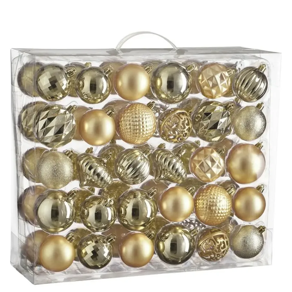 - Set van 60 stijlvolle champagnekleurige kerstballen met een diameter van 7 cm
