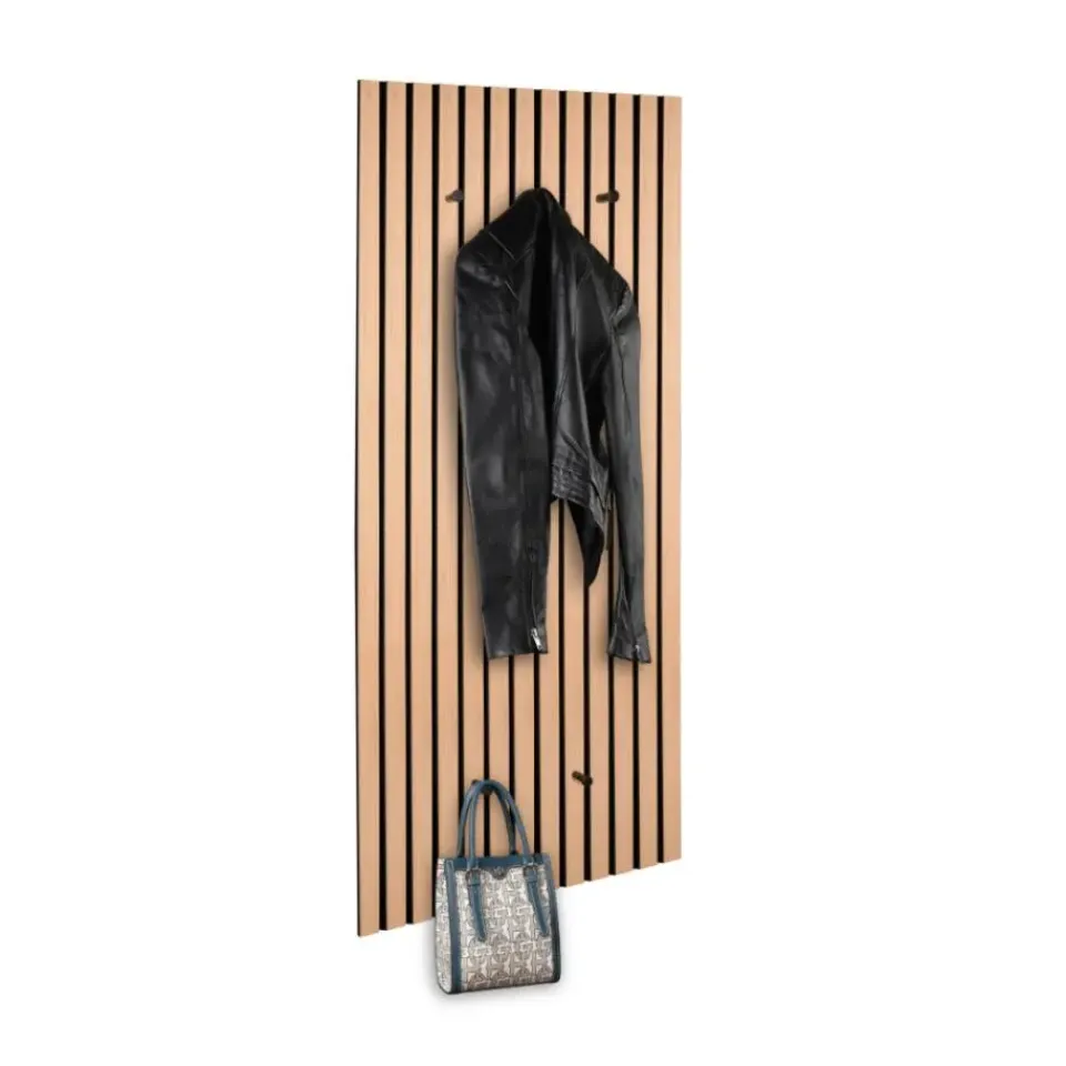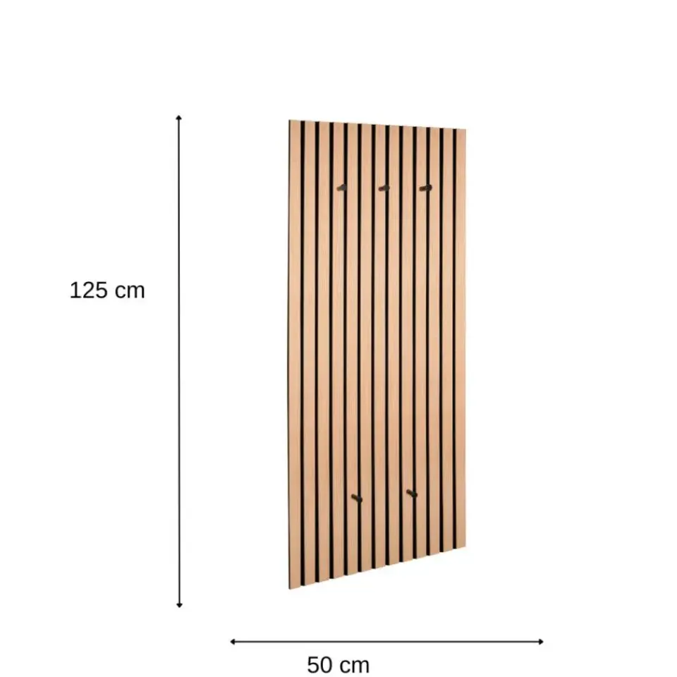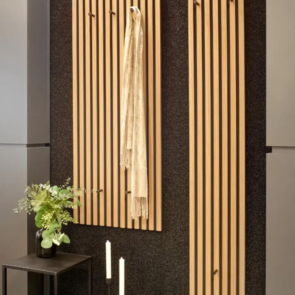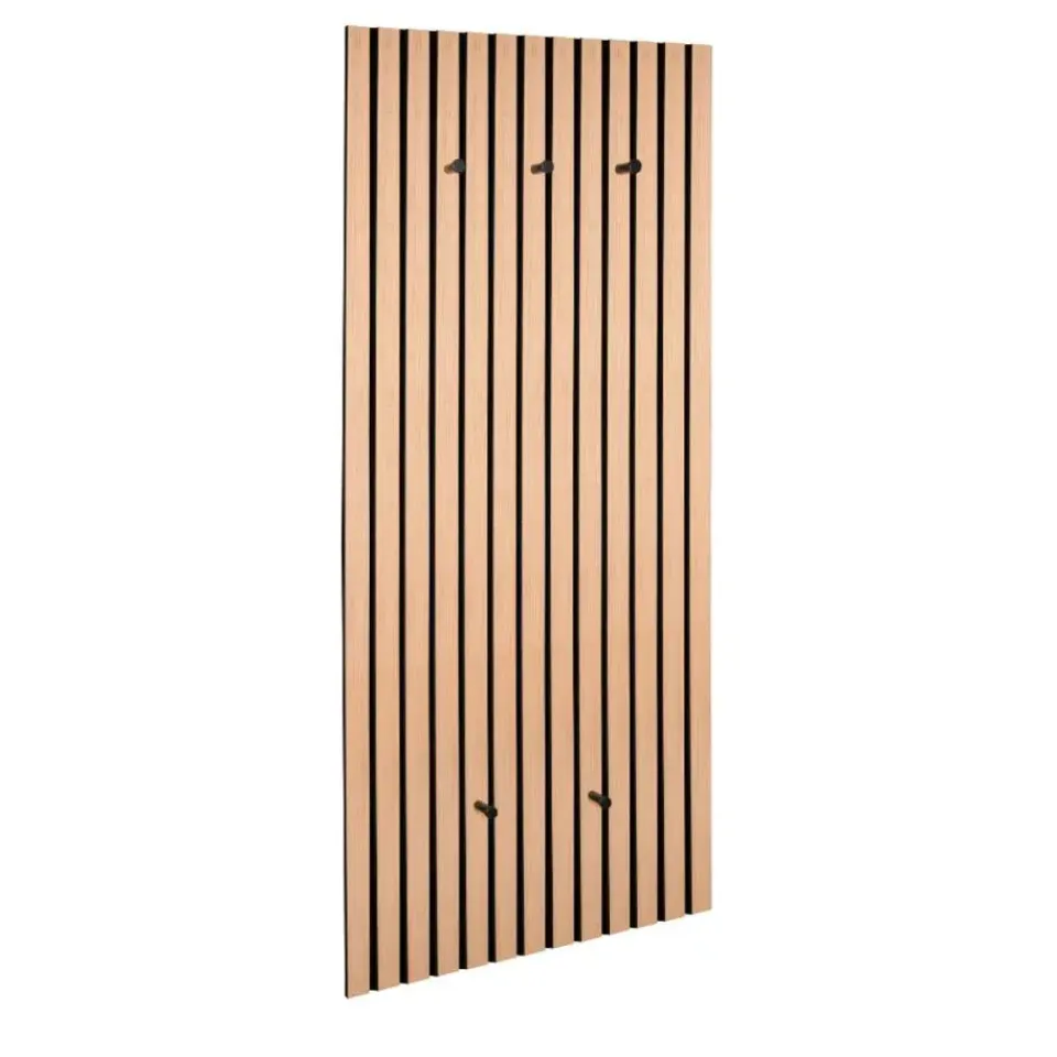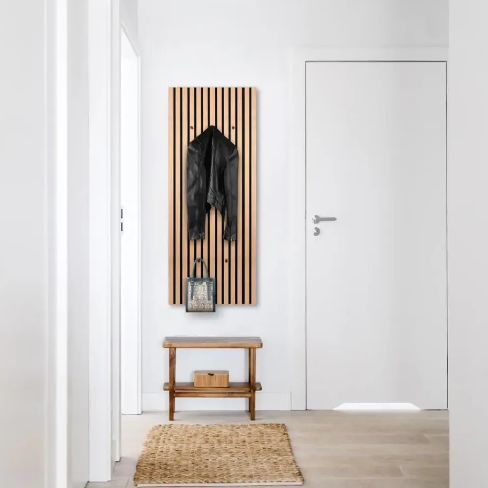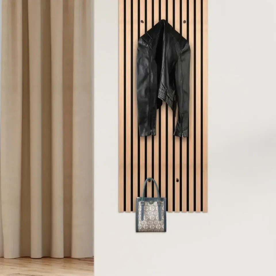 De MIRRORS AND MORE MISOU GRACE Kapstok is een perfecte combinatie van stijl, functionaliteit en akoestische verbetering. Dit wandpaneel biedt niet alleen een praktische opslagoplossing voor je jassen en accessoires, maar zorgt ook voor een rustiger geluidsklimaat in je ruimte door de geïntegreerde akoestische panelen. Het lattenwandontwerp in eiken bruin zorgt voor een warme en natuurlijke uitstraling die perfect past in zowel moderne als meer traditionele interieurs. Het MDF-frame in combinatie met vilt maakt de kapstok niet alleen stevig, maar ook duurzaam, terwijl het akoestische effect zorgt voor een prettige geluidsomgeving in je woning.