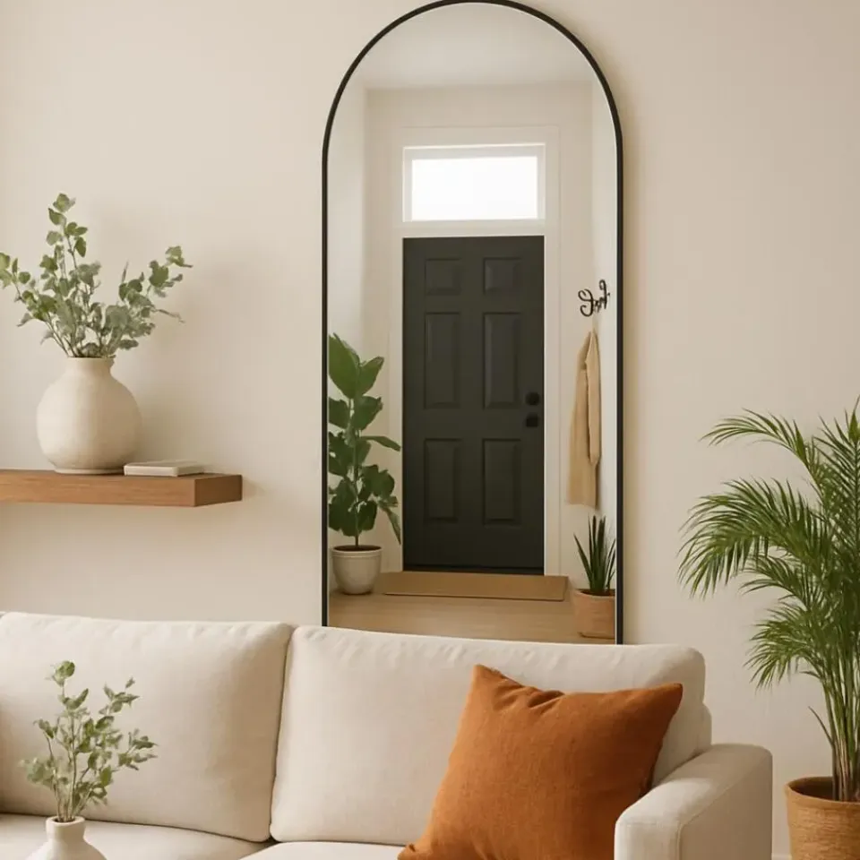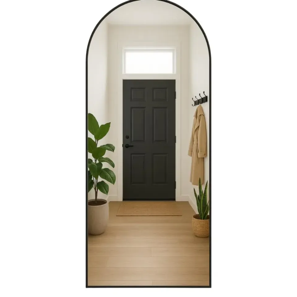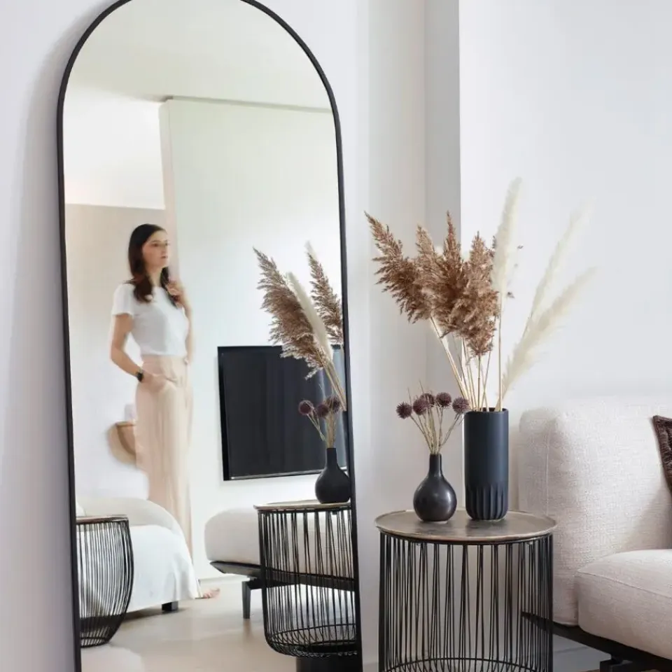 Ontdek de charme van zachte lijnen en eigentijdse elegantie met de MIRRORS AND MORE MISOU JULIA Spiegel. Deze stijlvolle organisch gevormde spiegel van 170 x 70 cm brengt een speelse maar verfijnde sfeer in je interieur. Dankzij de halfronde vorm doet hij denken aan een opkomende maan, wat hem de bijnaam Maanspiegel oplevert. Of je hem nu als wandspiegel ophangt of als staande passpiegel tegen de muur zet – de JULIA is niet alleen praktisch, maar ook een decoratief statement. De unieke vorm zorgt voor een natuurlijk en luchtig gevoel in de ruimte, perfect voor de hal, woonkamer, slaapkamer of kleedruimte.