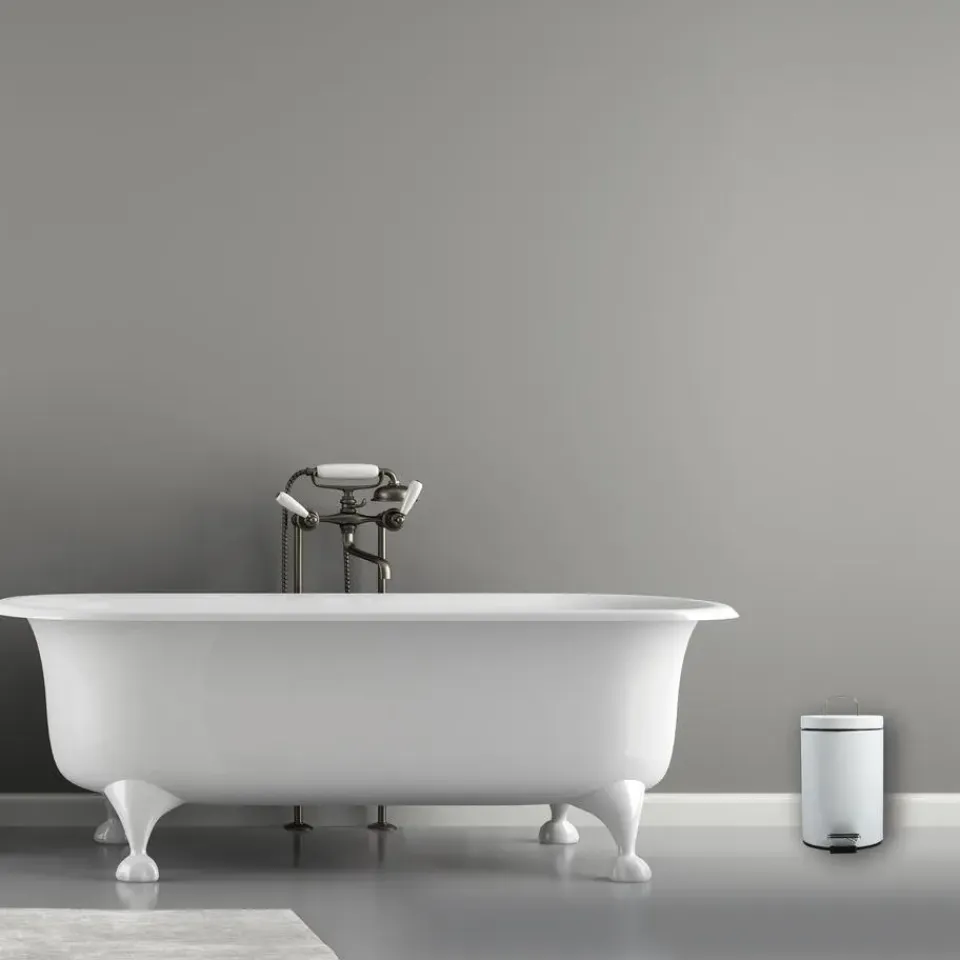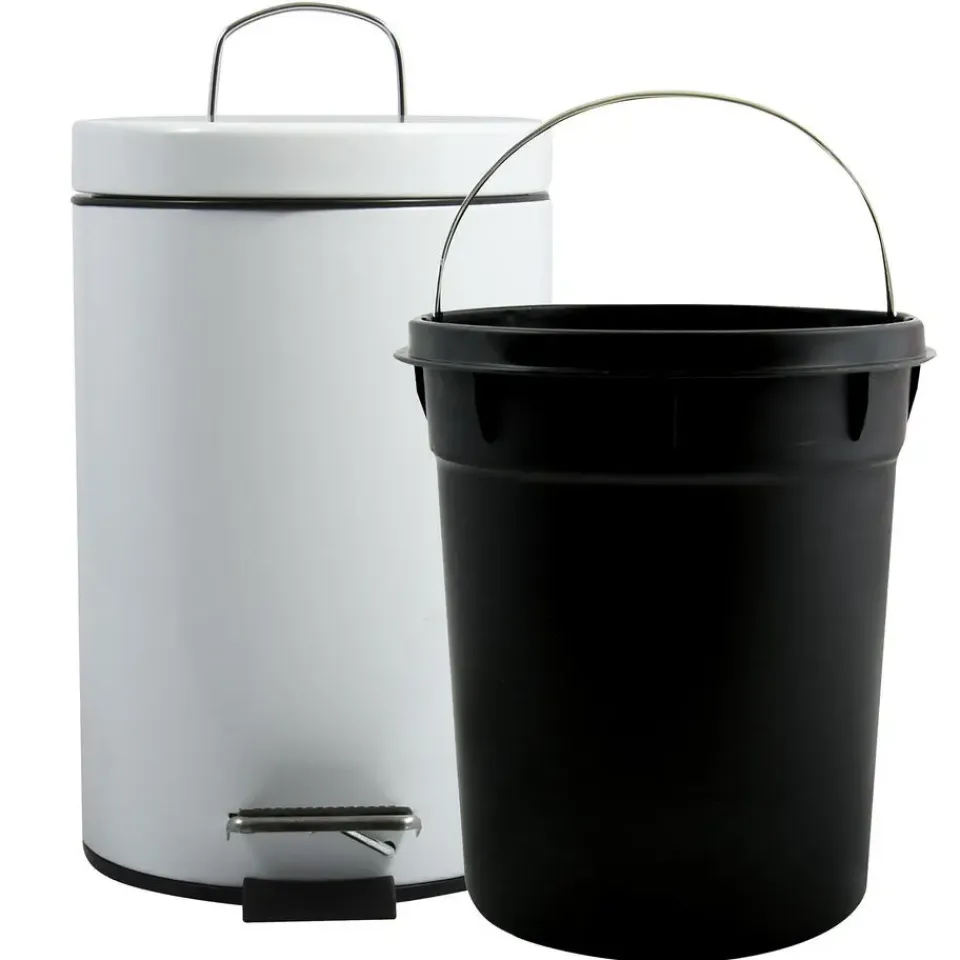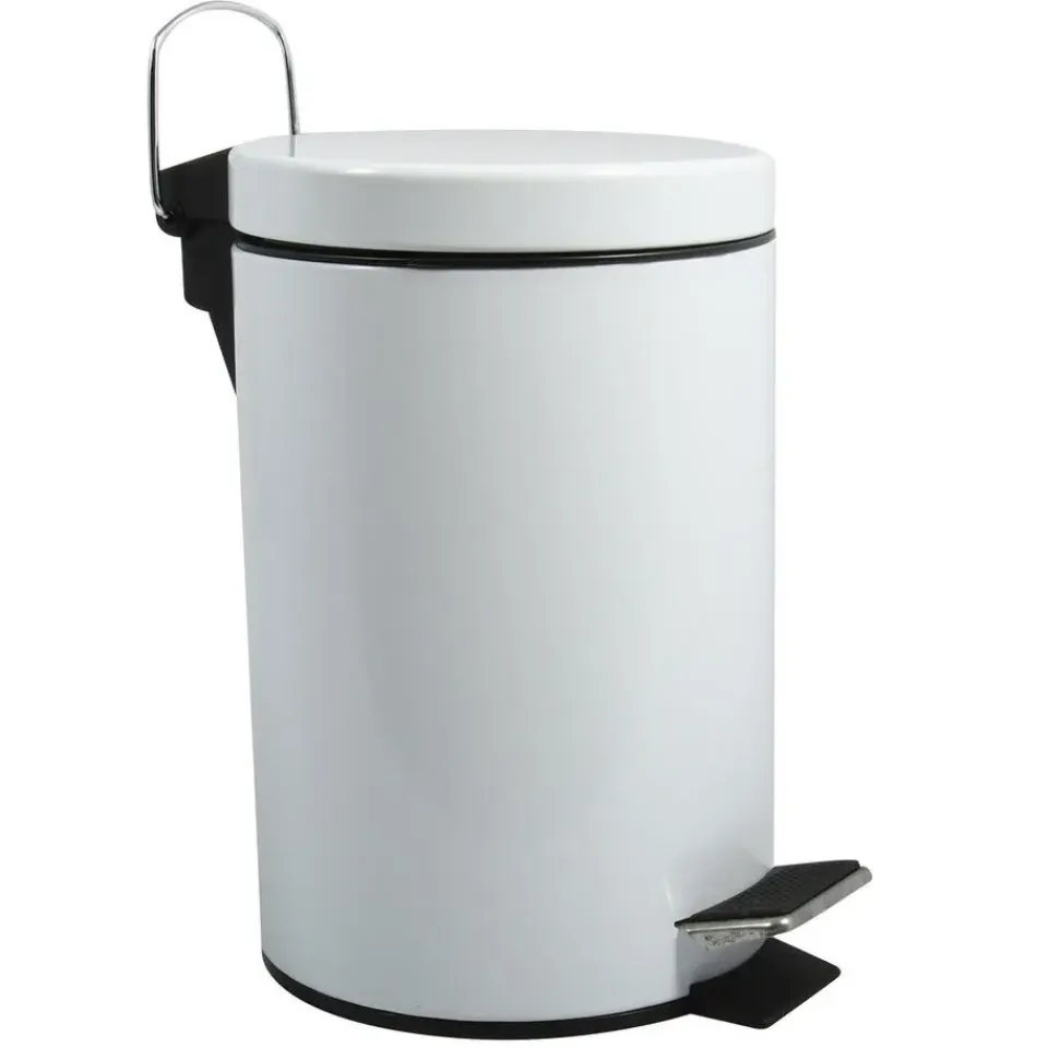 Pedaalemmer voor badkamer en toilet, klein model met inhoud 3 liter. Deze prullenbak is gemaakt van rvs en metaal en heeft een formaat van ca. L17 x H25 cm. Deze kleine pedaalemmers hebben een uitneembare binnenbak. De deksel is ook wit.