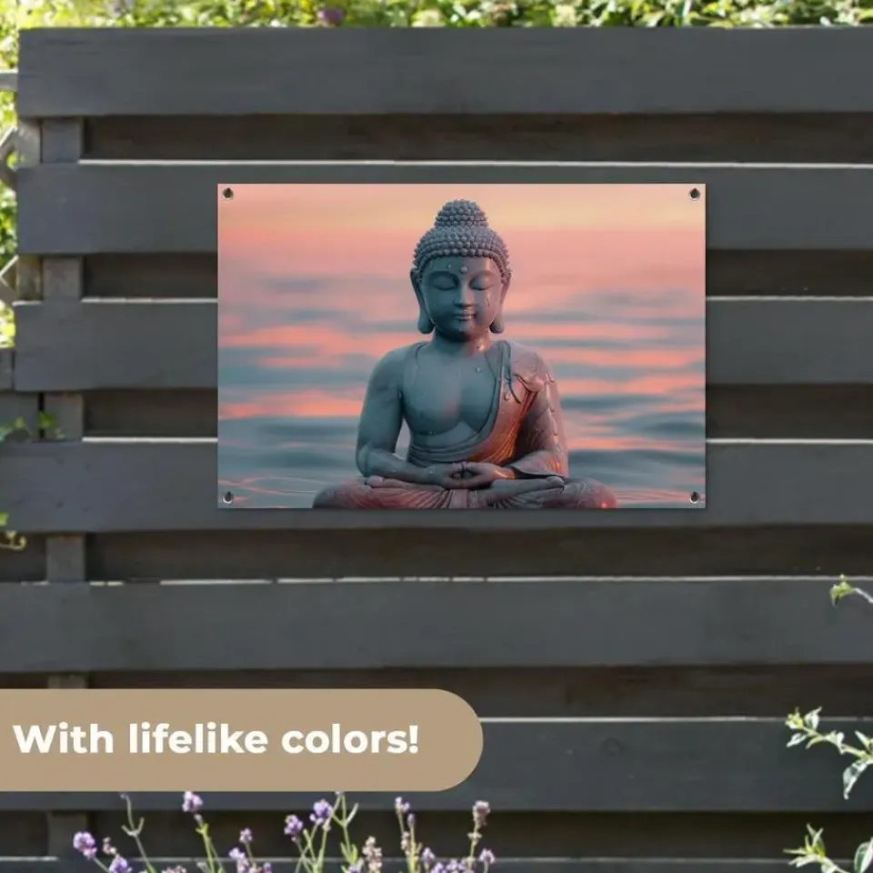 De MuchoWow tuinposter is de ideale manier om meer sfeer aan je tuin te geven. Door middel van de ingezoomde ringen is het tuindoek zeer gemakkelijk op te hangen en blijft hij ook goed hangen in weer en wind. Als je op zoek bent naar een leuke tuindecoratie ben je bij MuchoWow aan het juiste adres.