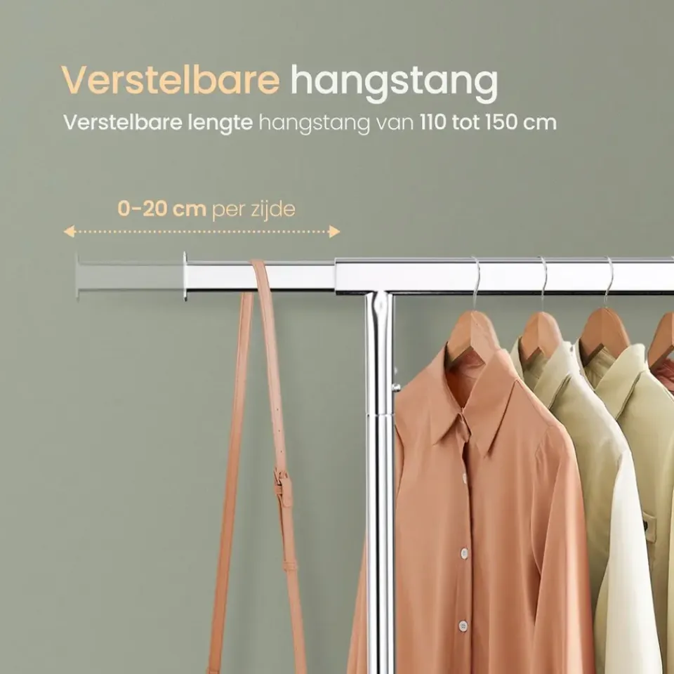 Uitschuifbaar van 110 tot 150 cm voor meer hangruimte.