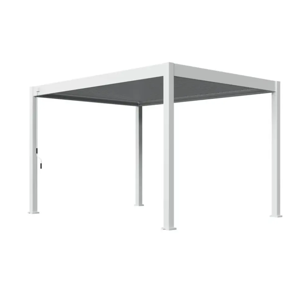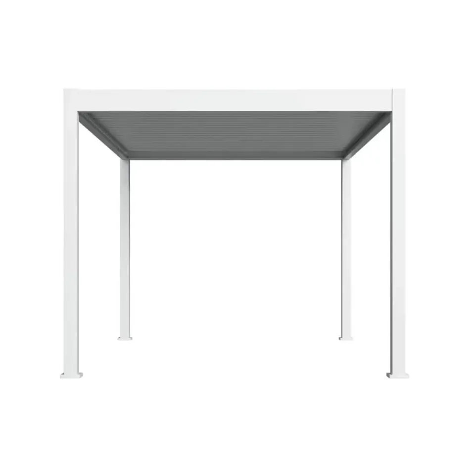 Bij de Orion Comfort overkapping 300 x 400 is enkel gebruik gemaakt van hoogwaardige materialen. De lamellen zijn gemaakt van metaal en rest van het frame van aluminium. Aluminium is ideaal voor buiten, roest niet en is bestand tegen weersinvloeden en UV-straling. Daarnaast beschikt deze overkapping over extra dikke poten van 116 x 116 mm. Dit zorgt voor een robuuste uitstraling. Alle schroeven zijn volledig RVS. Door de keuze voor deze hoogwaardige materialen is deze pergola zonder problemen het gehele jaar door te gebruiken. En dat voor jaren lang!