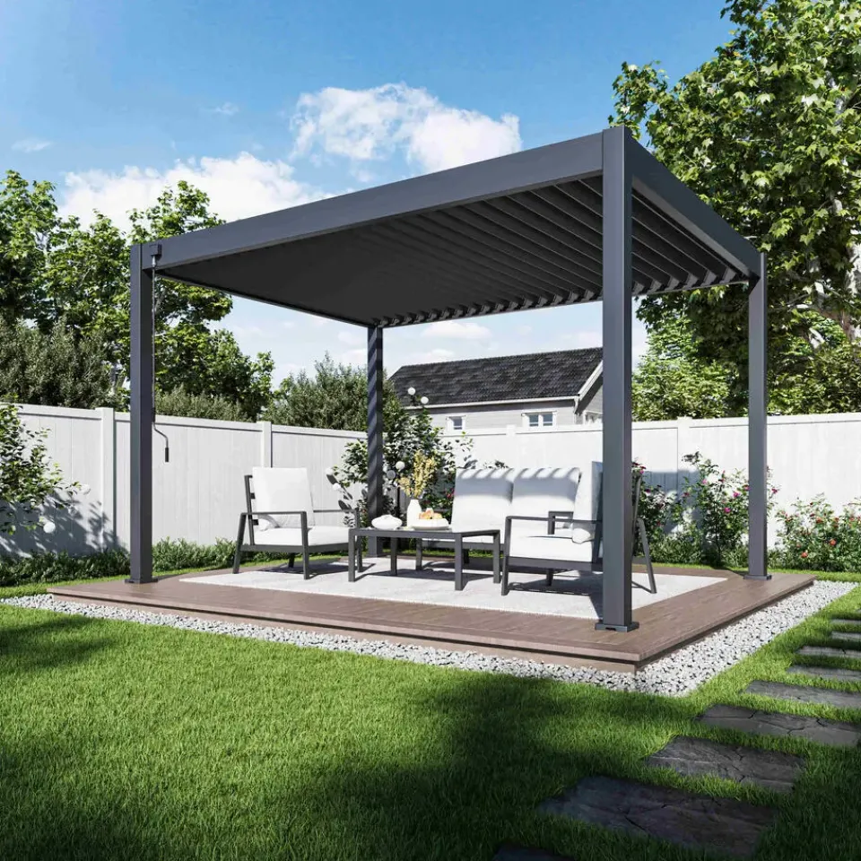De Orion Deluxe overkapping is een stijlvolle en praktische oplossing voor mensen die op zoek zijn naar een manier om hun buitenruimte te beschermen tegen de zon, regen of sneeuw. Hiermee verleng je je buitenseizoen en zit je altijd comfortabel in eigen tuin. De Orion Deluxe overkapping biedt een overdekte ruimte van 12 m² waar je kan genieten van het buitenleven in alle seizoenen. Daarnaast is deze pergola perfect geschikt als overkapping voor een lounge set, zwembad of spa. De overkapping kan ook dienen als carport voor een motor of auto.