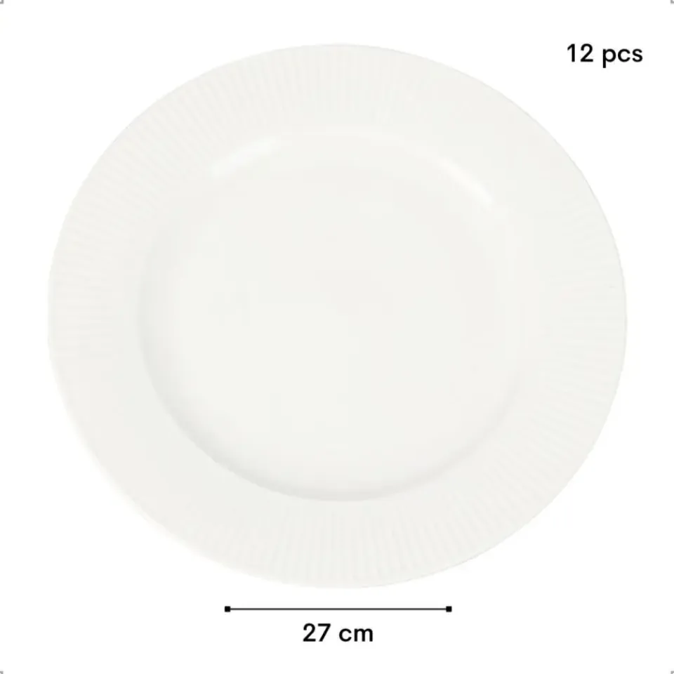 De OTIX Dinerborden Bordenset LUNA is een verfijnde keuze voor een stijlvolle tafelsetting. Deze set van 12 witte dinerborden van 27 cm is ideaal voor het serveren van Diner maaltijden. Gemaakt van hoogwaardig porselein, biedt deze bordenset duurzaamheid en elegantie in één.
