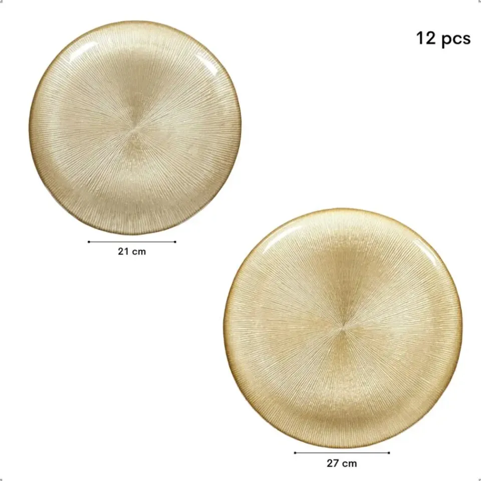Gemaakt van hoogwaardig glas, bieden de borden duurzaamheid en een verfijnde uitstraling. De set bevat zes dinerborden van 27 cm en zes dessertborden van 21 cm, perfect voor het serveren van hoofdgerechten en desserts. De AUREA bordenset is de ideale keuze voor feestelijke diners en stijlvolle bijeenkomsten!