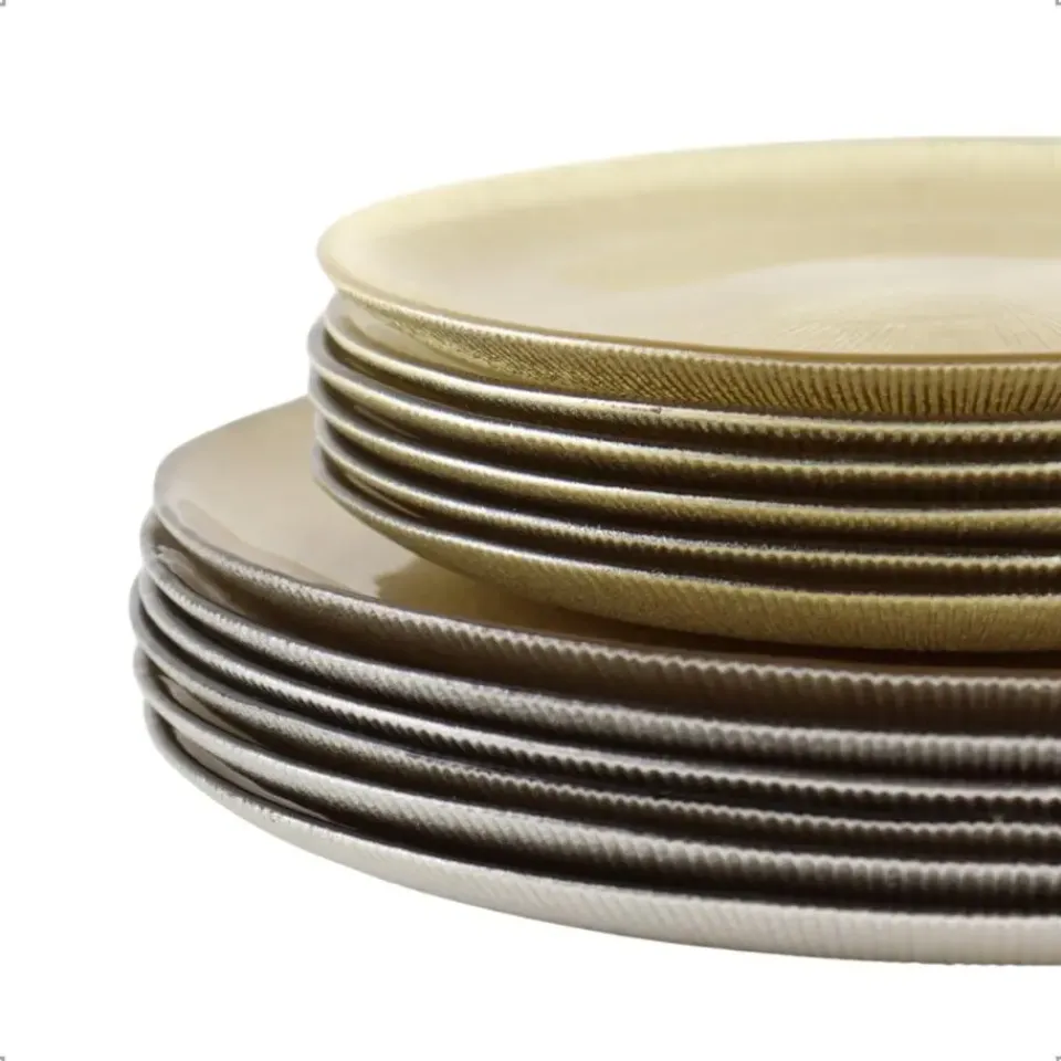 Houd je tafel gedekt in stijl met de OTIX Diner Bordenset 6 Persoons. Deze prachtige 12-delige set bestaat uit onderborden en dessertborden, geschikt voor 6 personen. Met hun elegante gouden glitterafwerking voegen de borden een vleugje luxe toe aan elke eetgelegenheid.