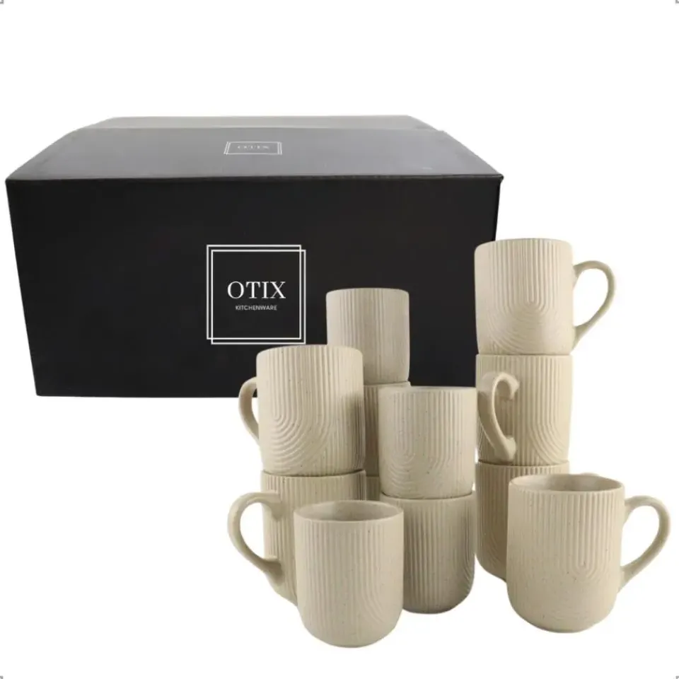 Breng elegantie en functionaliteit naar je koffiemomenten met de OTIX Koffiekopjes Sets. De set van 6 koffiekopjes zonder oor (190 ml) is ideaal voor koffie, thee en andere warme dranken, terwijl de set van 6 koffiekopjes met oor (300 ml) perfect is voor cappuccino en grotere porties. Beide sets zijn vervaardigd uit hoogwaardig aardewerk en combineren duurzaamheid met een verfijnde uitstraling.