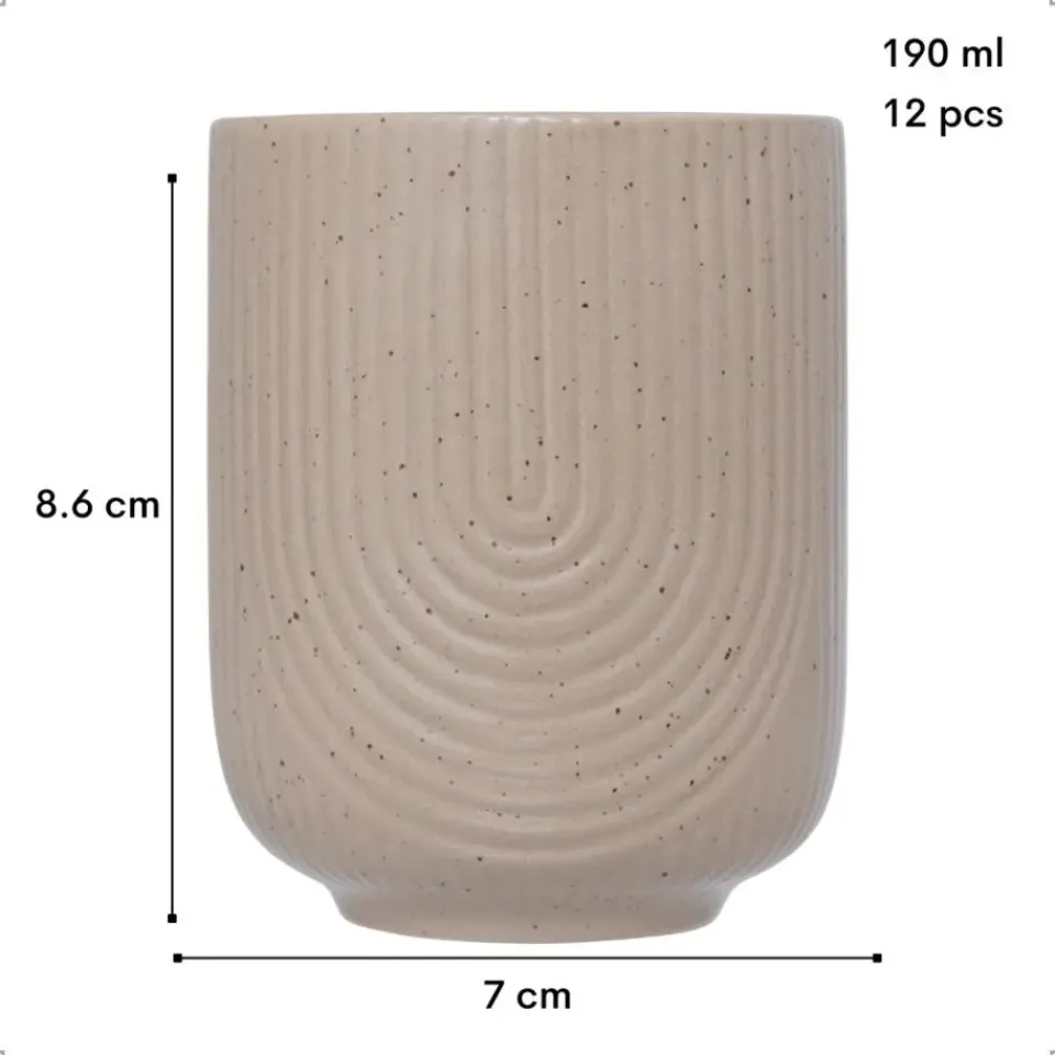 De OTIX Koffiekopjes Zonder Oor Set van 12 biedt een elegante en functionele oplossing voor uw koffiemomenten. Deze set bevat zes koffiekopjes met een inhoud van 190ml, vervaardigd uit hoogwaardig aardewerk. Perfect voor koffie, thee of andere warme dranken.