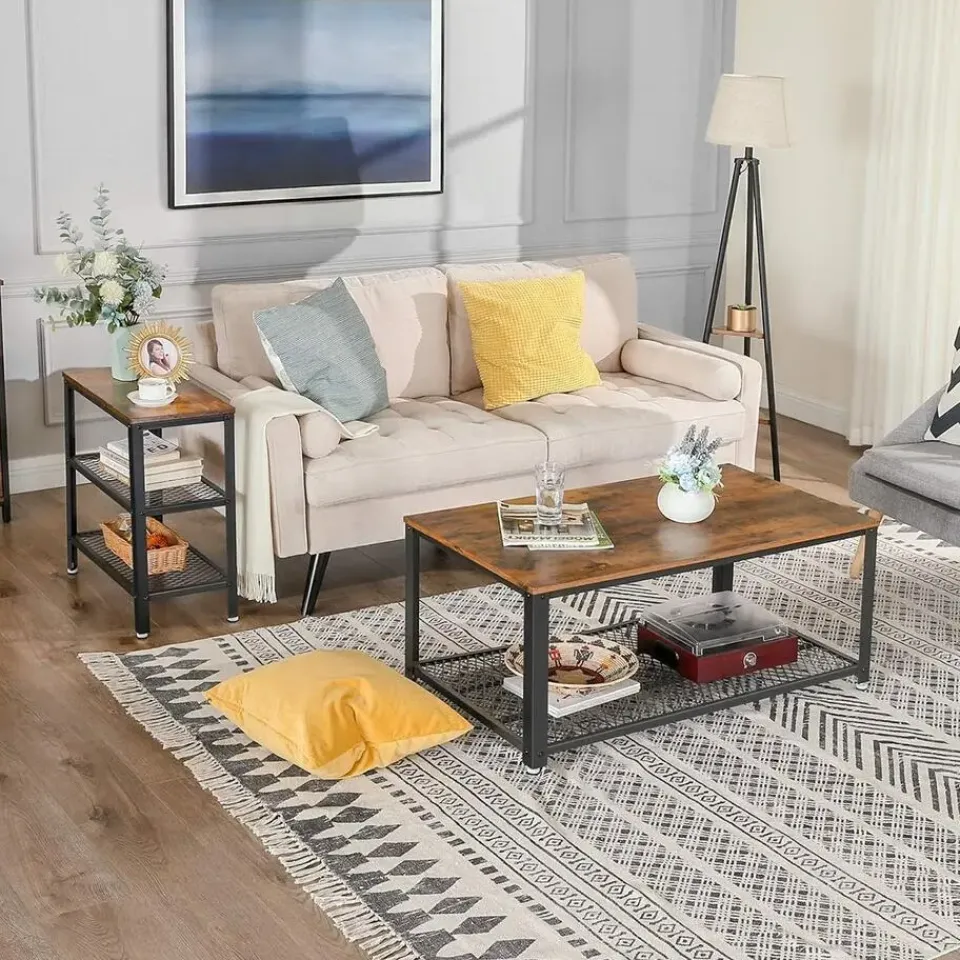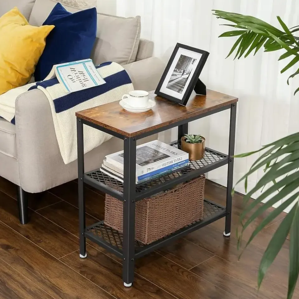 Met deze bijzettafel krijg je 3 opties voor opslag. Het rustieke bruine oppervlak en de twee stevige roosterniveaus bieden ruimte voor boeken, tv-accessoires, brillen, planten en meer. Het is veelzijdig genoeg om in verschillende kamers te passen.