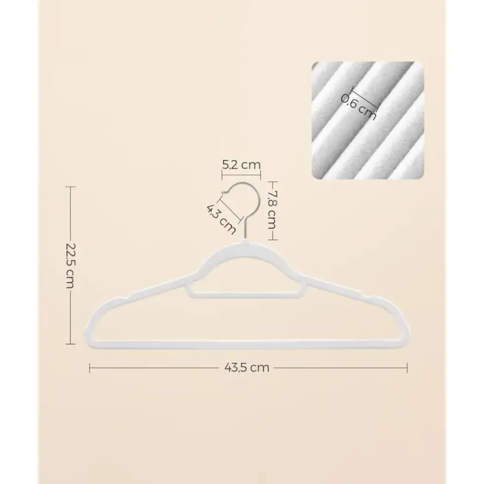 Ruimtebesparing: Heeft jouw kast aan alle kanten een tekort aan ruimte? Dan hoef je niet per se een nieuwe kast te kopen. Met onze 0,6 cm dunne kleerhangers bespaar je veel ruimte, zodat je weer ruimte hebt voor nieuwe aankopen.