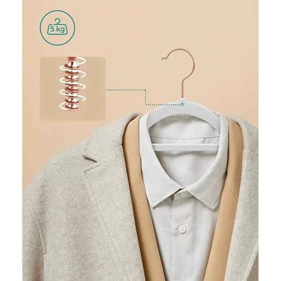 Goede grip: Als je het zat bent dat je kleren van de hanger vallen, is deze hangerset zeker het proberen waard. Het fluwelen oppervlak zorgt voor optimale slipweerstand, zodat zelfs een zijden blouse niet wegglijdt.