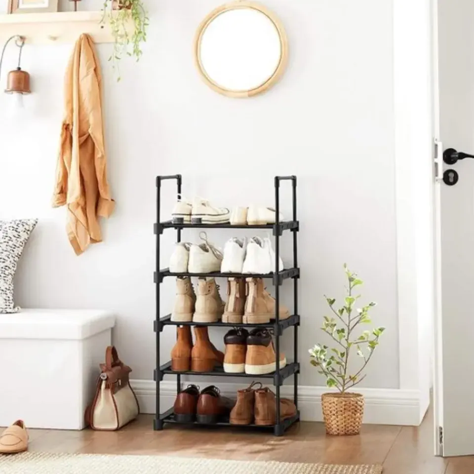 Wie de chaos beheerst, heeft het leven onder controle! Trakteer uzelf op deze ruimtebesparende 5-plankenstandaard en houd de schoenenchaos onder controle. Schoenchaos onder controle: Voorbij zijn de dagen dat al je schoenen over de vloer verspreid lagen. Op deze plank kunt u uw sportschoenen, ballerina’s etc. kwijt. Houd ze netjes. Niet genoeg ruimte voor laarzen? Verwijder een plank!