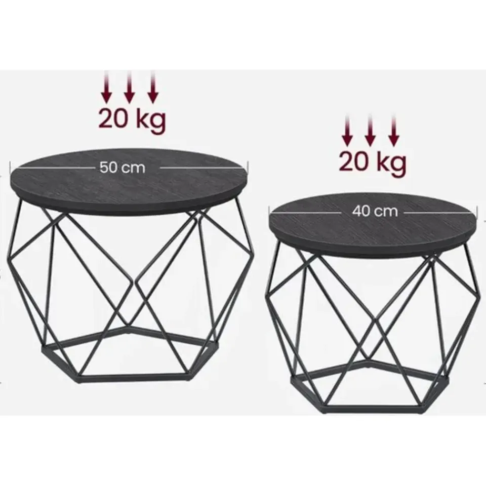 De combinatie van hoogwaardig spaanplaat en een stevig stalen frame zorgt ervoor dat deze bijzettafels bijzonder stabiel zijn, waardoor ze niet wiebelen wanneer je je koffiekopje oppakt. Elke kleine tafel kan een gewicht van maximaal 20 kg dragen.