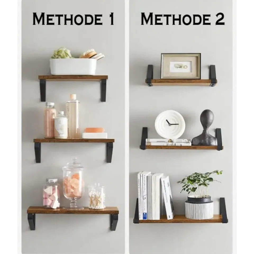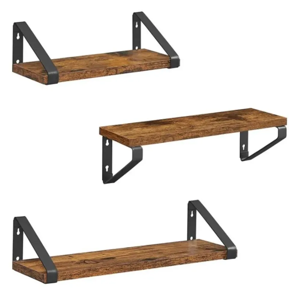 Als je een aantal leuke decorstukken hebt gekocht om je huis op te fleuren, dan zullen deze zeker passen op deze mooie set van 3 wandplanken. De planken hebben een rustieke vintage stijl en een zwart metalen frame.