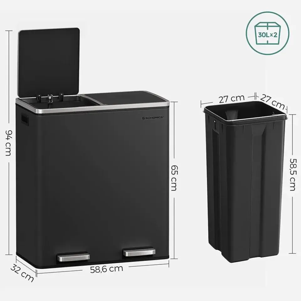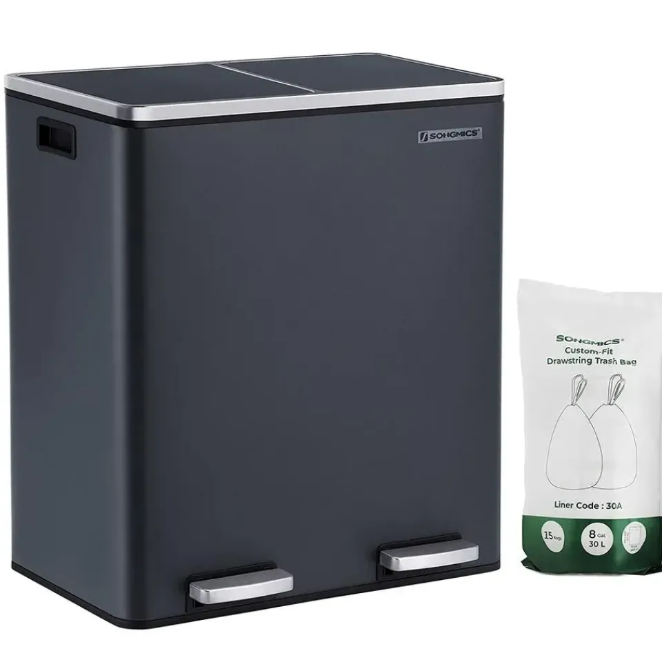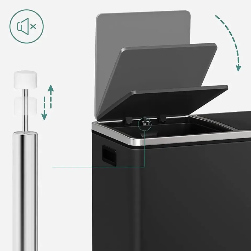 Een echte aanwinst voor uw keuken: een afvalemmer op zich hoeft er niet uit te zien als afval; met zijn elegante grijze kleur en eenvoudige look zal deze afvalemmer van Parya home een blikvanger zijn in uw keuken In één stap klaar: de pedaalemmer is voorzien van pedalen waardoor hij gemakkelijk en hygiënisch te openen is, en heeft 2 binnenemmers zodat u uw afval er gescheiden per materiaal in kunt gooien – zo wordt afval weggooien en sorteren een fluitje van een cent! Laat ook zachte kant zien: Hoewel hij een harde buitenemmer heeft, heeft deze prullenbak ook zijn zachtere kant – Met de ingebouwde demper klapt het deksel niet abrupt dicht, maar sluit het langzaam en geruisloos; De luchtdichte afsluiting houdt uw gezin veilig tegen bacteriën en vieze geurtjes Emmer in een emmer: u kunt de twee binnenemmers gemakkelijk uit de afvalemmer tillen met behulp van de praktische metalen handgrepen. Dus als een afvalzak ooit scheurt, kunt u de bak schoonmaken zonder gedoe.